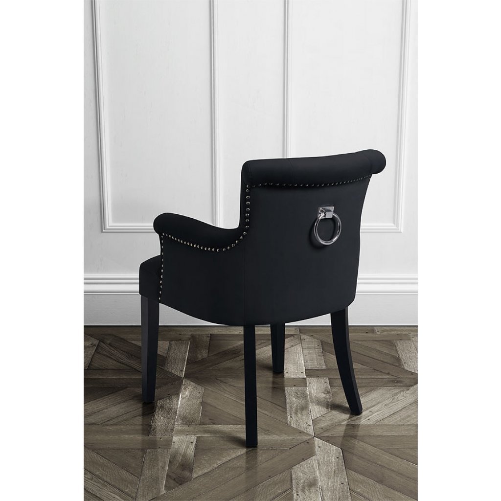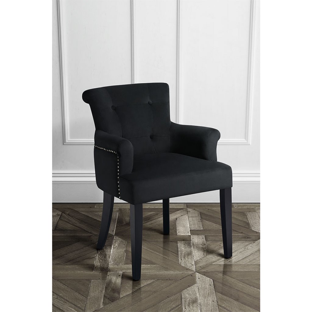 I love this chair for its sophisticated yet versatile look. The black velvet finish adds a touch of luxe, making it ideal for contemporary dining spaces or more classic interiors with a modern twist. Its curved, cushioned back and armrests provide both style and comfort, encouraging longer dinners or conversations. It works particularly well in schemes that mix textures - think marble tables or metallic accents - but can also serve as a statement piece in minimalistic interiors. Practical styling tips include pairing it with a sleek glass or wooden table, and adding cushions or throws in contrasting colours or patterns to soften the overall vibe and personalise the space.