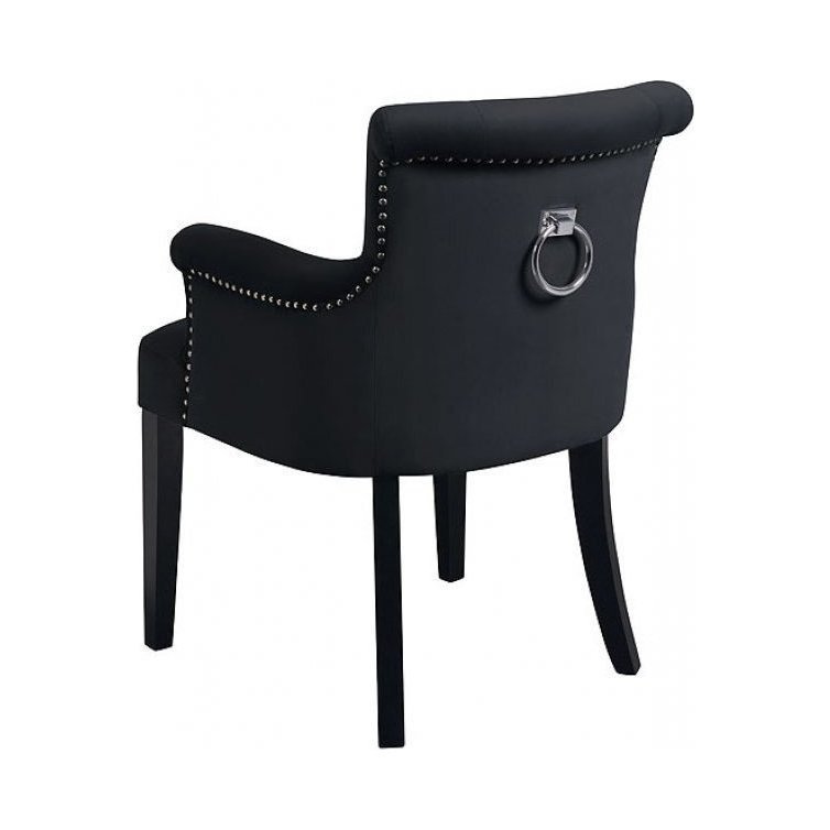 Designed specifically to coordinate with our best-selling Positano Dining Chairs. Satin black stained Legs. Diamond quilting with buttoned detailing. Handsome chrome studding and ring handle detail. Luxurious velvet fabric. Comfortable foam seat with sprung webbing. Minimal assembly required, simply attach legs.