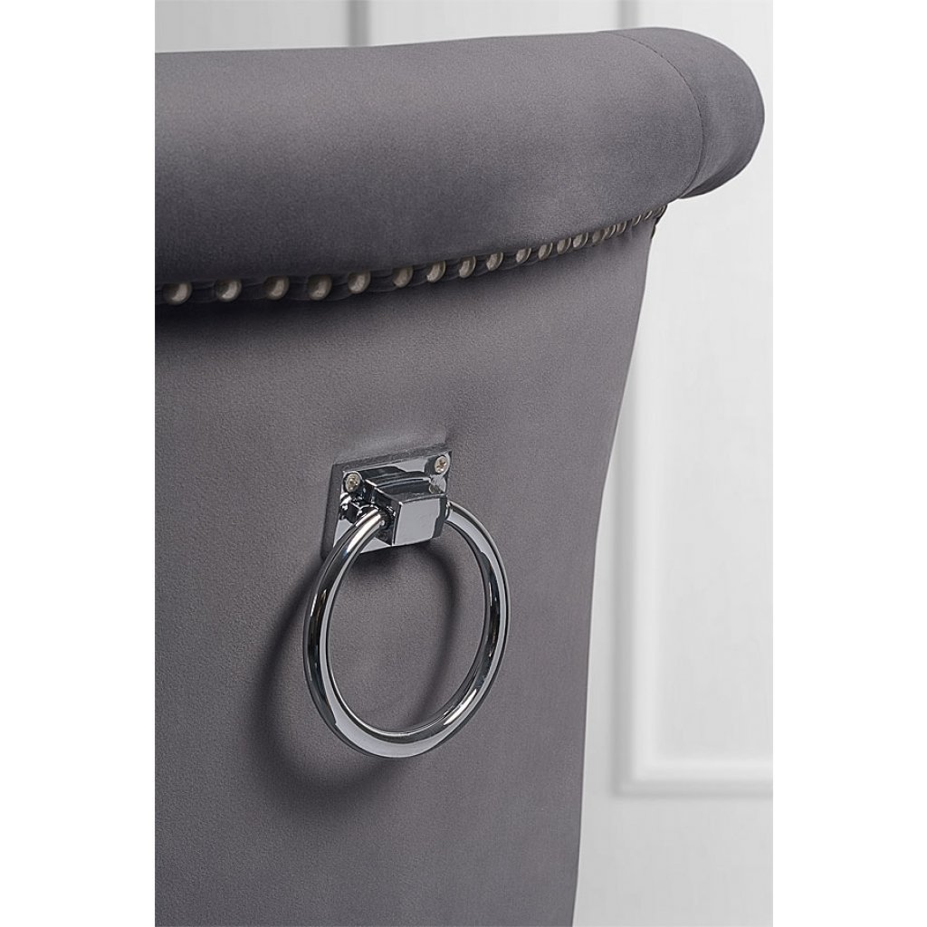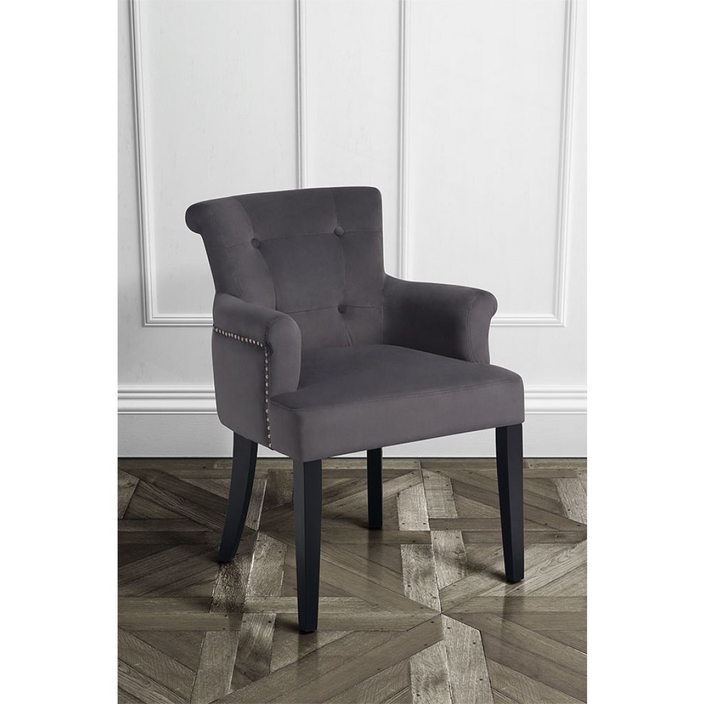 Designed specifically to coordinate with our best-selling Positano Dining Chairs. Satin black stained Legs. Diamond quilting with buttoned detailing. Handsome chrome studding and ring handle detail. Luxurious velvet fabric. Comfortable foam seat with sprung webbing. Minimal assembly required, simply attach legs.