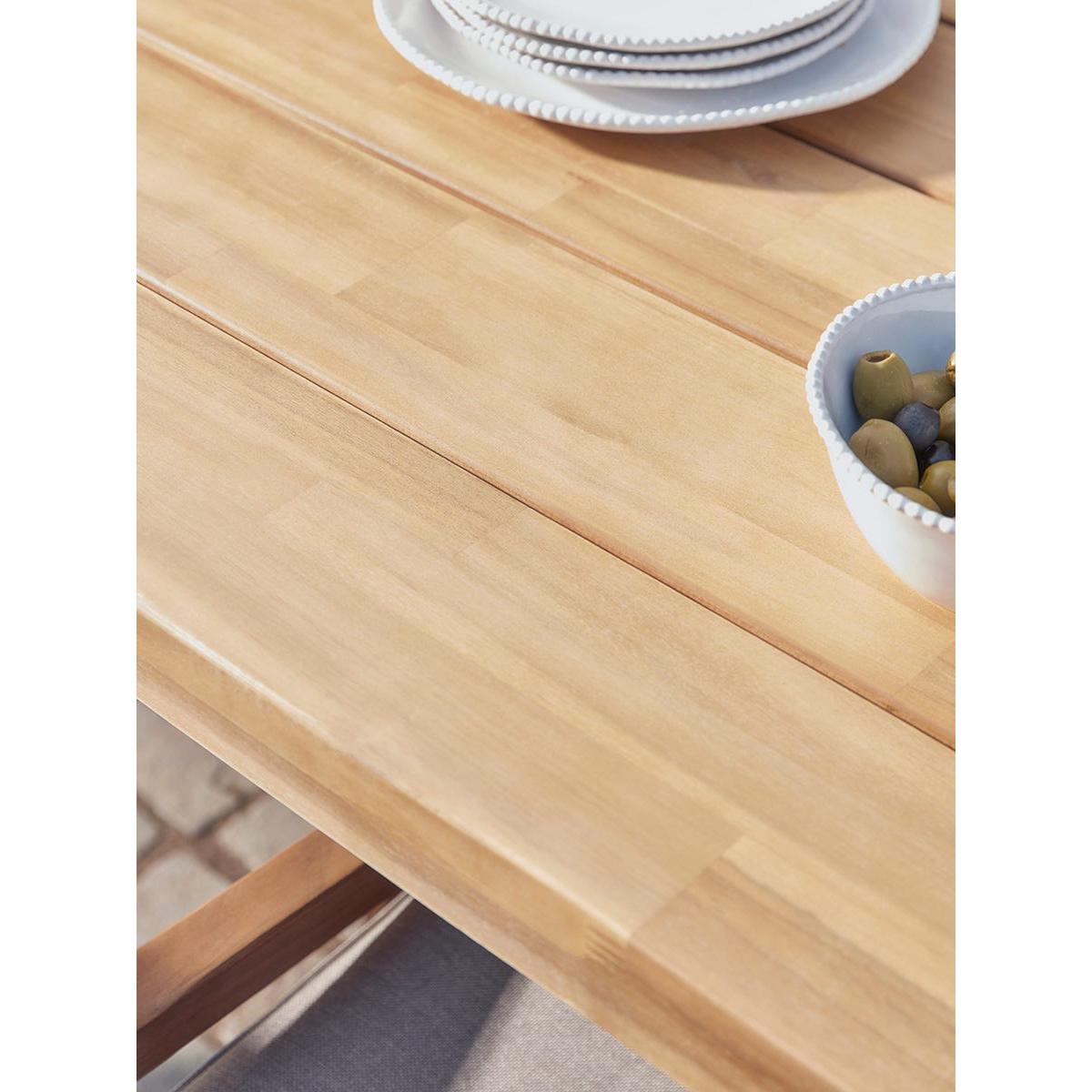 I love the Positano cross-legged dining table for its versatile, understated elegance that works well in a variety of outdoor settings. It suits both rustic gardens and more contemporary patios, adding warmth and a relaxed vibe without feeling bulky. Styling tips include pairing it with mix-and-match chairs for an eclectic look or keeping it cohesive with matching benches for a streamlined aesthetic. Incorporating outdoor pendant lighting or cosy lanterns can enhance its appeal during evening gatherings, while neutral tableware punctuated with colourful accessories can bring a lively touch to your al fresco meals. Its natural wood finish invites a relaxed, inviting atmosphere that’s perfect for casual dining and outdoor entertaining.