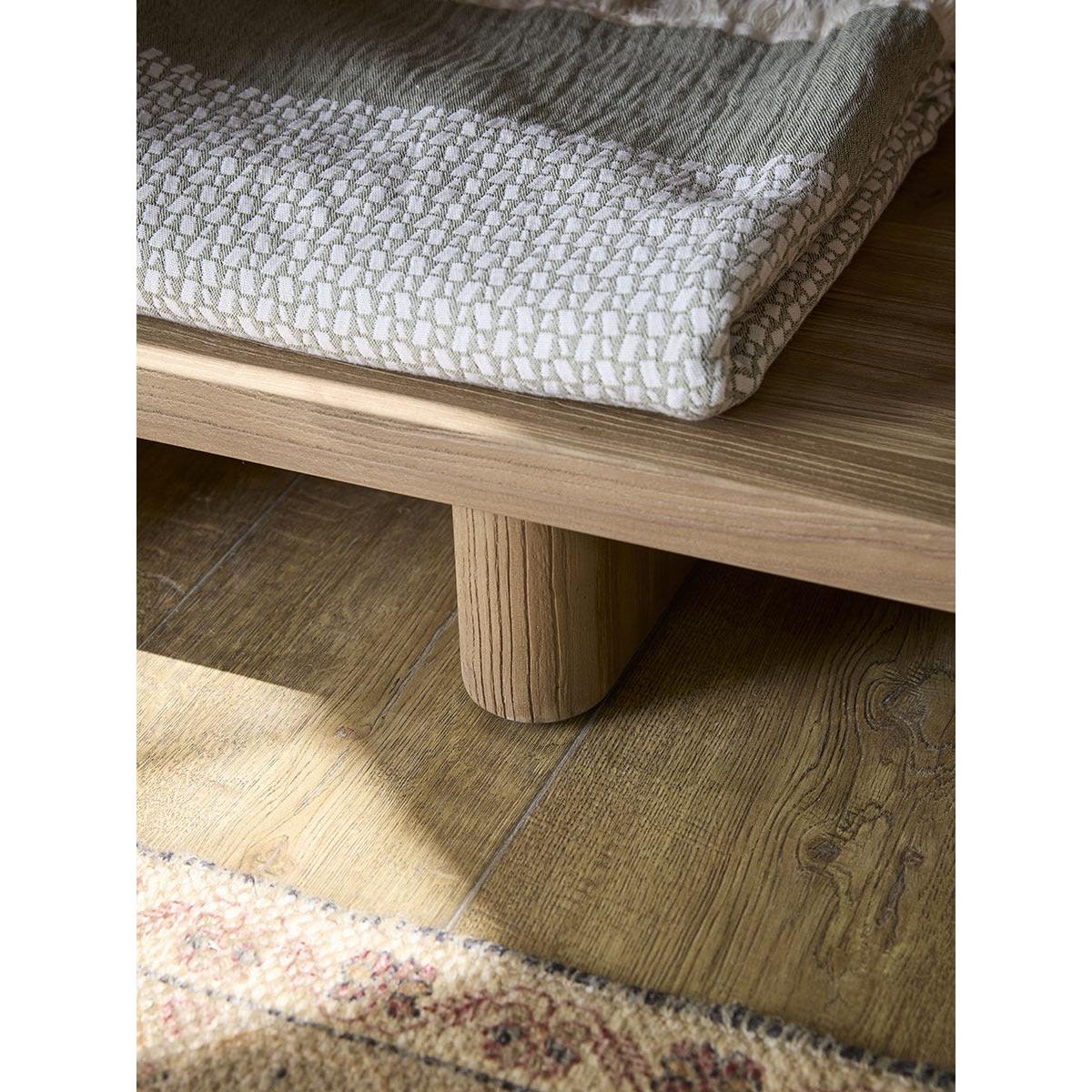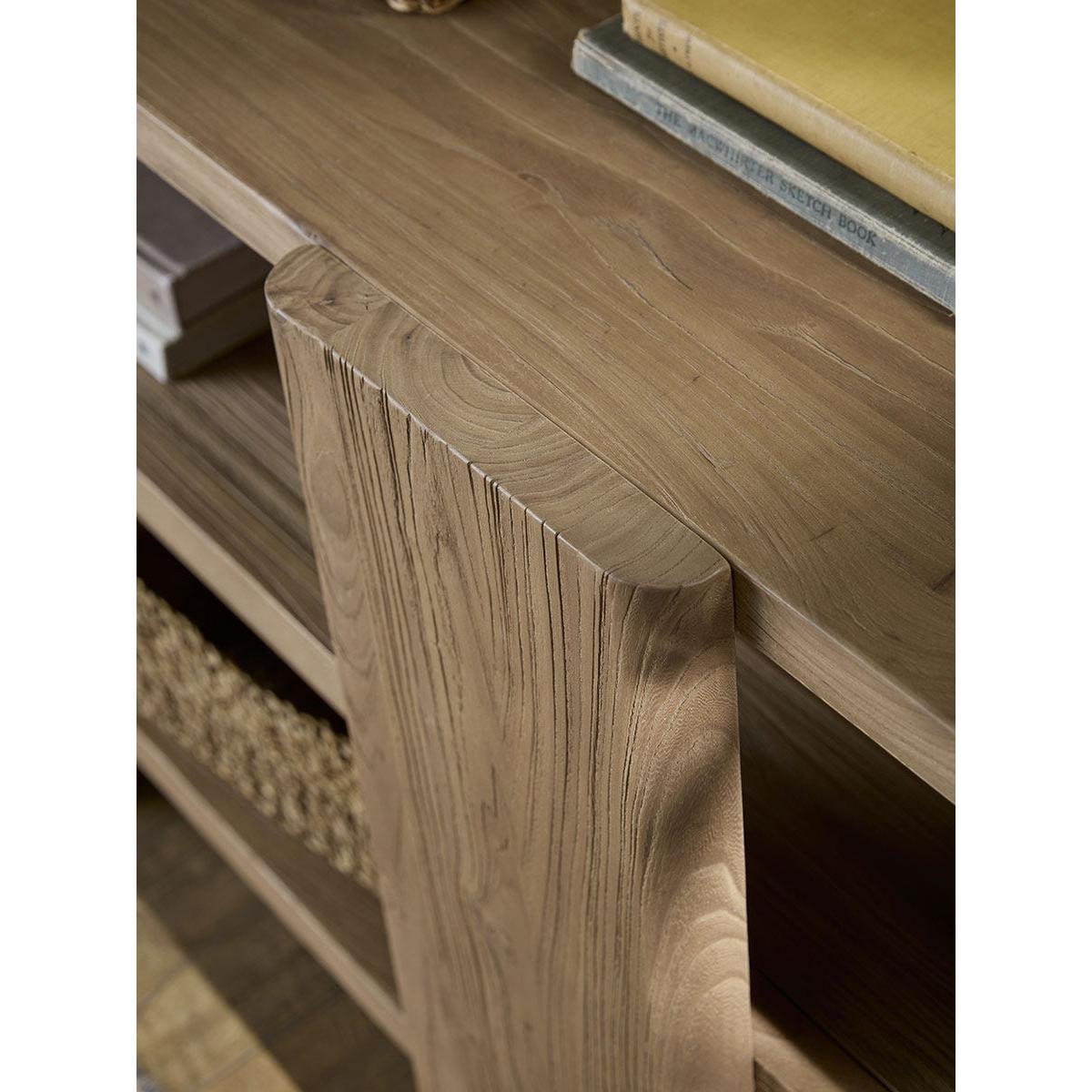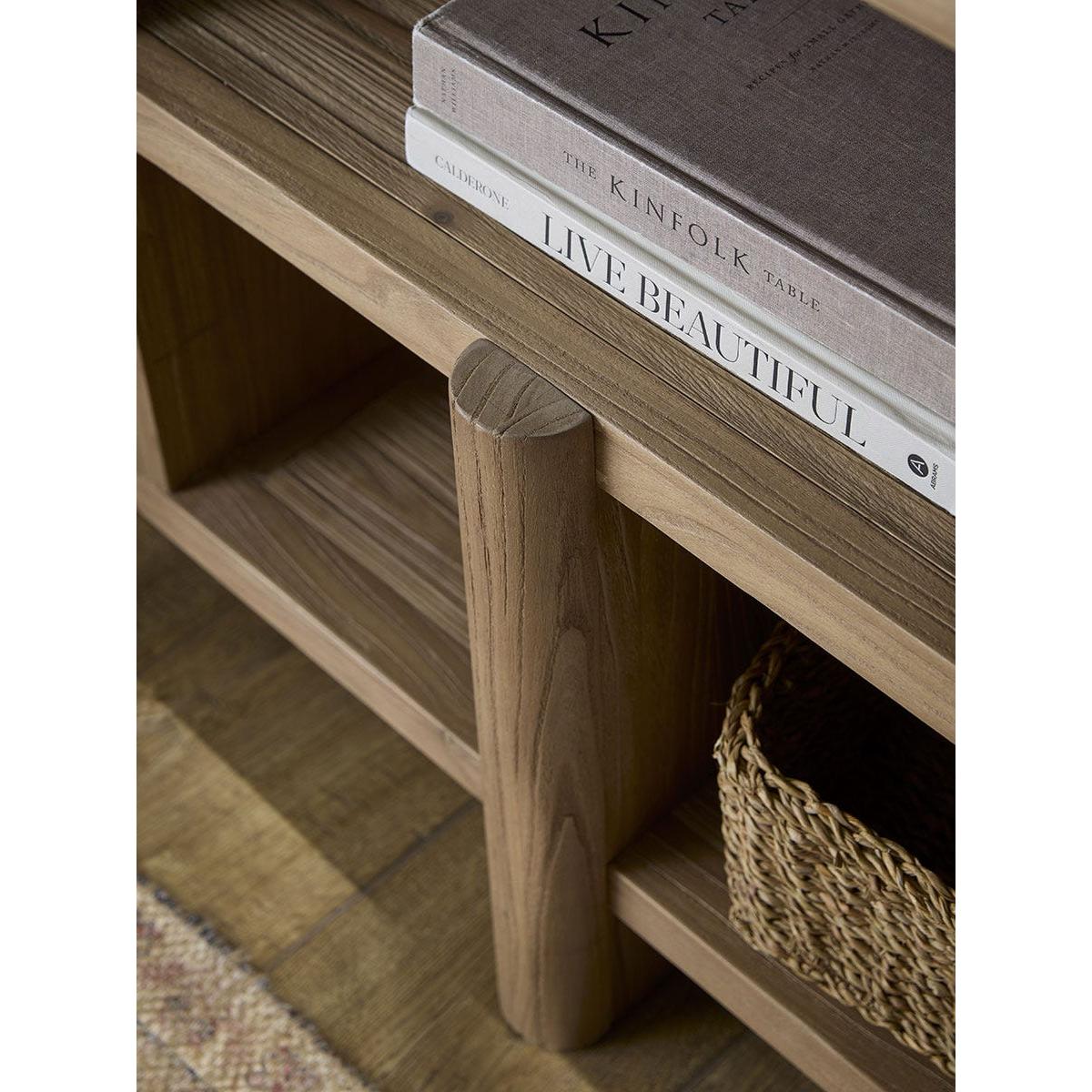 Abstract in appearance, our Positano Sideboard is as practical as it is stylish. One shelf is split through with vertical legs of different widths - a narrow semi-circle pole that reaches the first shelf, set next to a wide and flat wooden leg that reaches the top of the shelving unit, contrasted by a petite round cylindrical leg that sits on the far right. Natural tones and a boxy shape make this the perfect fit in any home, from modern to rustic.