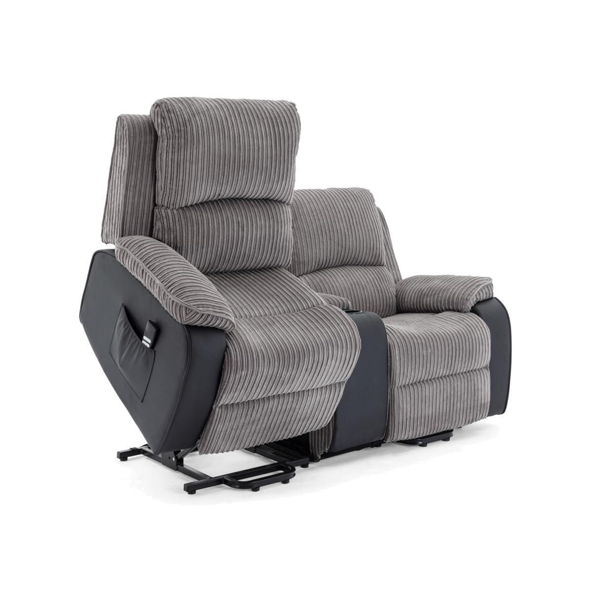 The super-smart Postana Electric Single Motor Rise Recliner Sofa is a first-class addition to any living space, especially a study or conservatory. With the 2 seats separated by a brilliant drinks console with storage, you can operate the seats independently with the easy-to-use remote control. The four-button controller enables you to independently move the backrest and footrest while reclining to a sleeping position and then rise to a standing position with complete ease when the rise function is selected. You can either do this independently or in synchronisation with the other seat. The Drinks Console has two cup holders, and a storage compartment in the middle, with pockets on the sides of the chair. Part of our Premier collection, this luxury 2-Seater Sofa is upholstered in super comfortable Jumbo Cord with striking faux leather sides. Available in Brown and Grey Jumbo Cord, with either Single Motor Rise Recliner or Dual Motor Rise Recliner.