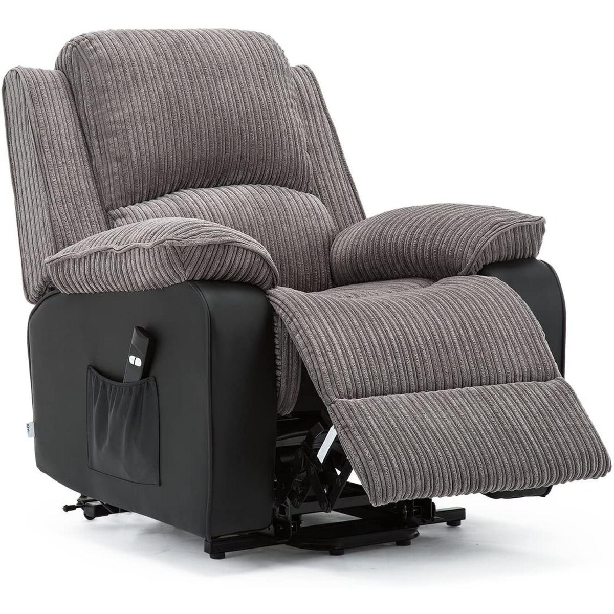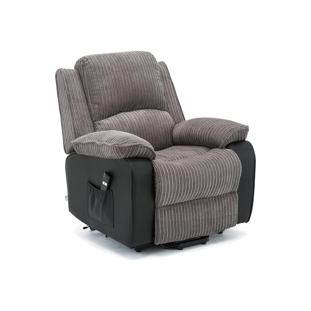 The stunning Postana Rise Recliner Armchair has been developed to the highest standards, providing strength, durability and supreme comfort. The Postana is one of the latest rise recliners in our Premier collection offering unsurpassed comfort. It is upholstered with super soft Jumbo Cord with contrasting faux leather sides. This chair features a single motor mechanism and has been designed for ease of use. The simple to operate, two button handset allows you to either rise or recline your chair at the touch of a button. The rise function will enable you to raise the chair to an almost standing position, making ideal for those who require assistance when transferring to or from the chair. Whilst the recline function allows you to adjust the chair to a comfortable snooze position for ultimate relaxation. All of our Recliners are supplied in two separate sections, the base and the backrest. This allows easy removal from the box and transport within the home, navigating doorways and staircases. Once situated, the backrest simply clips into the rear section of the base to allow instant relaxation and comfort in your new chair.