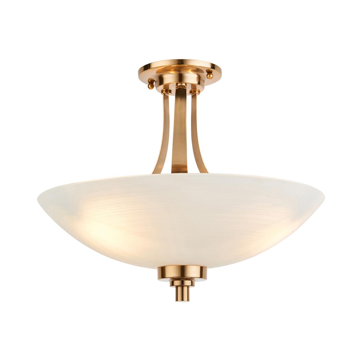 Posu 3-Light Semi-Flush | Brushed Brass | White Glass Shade