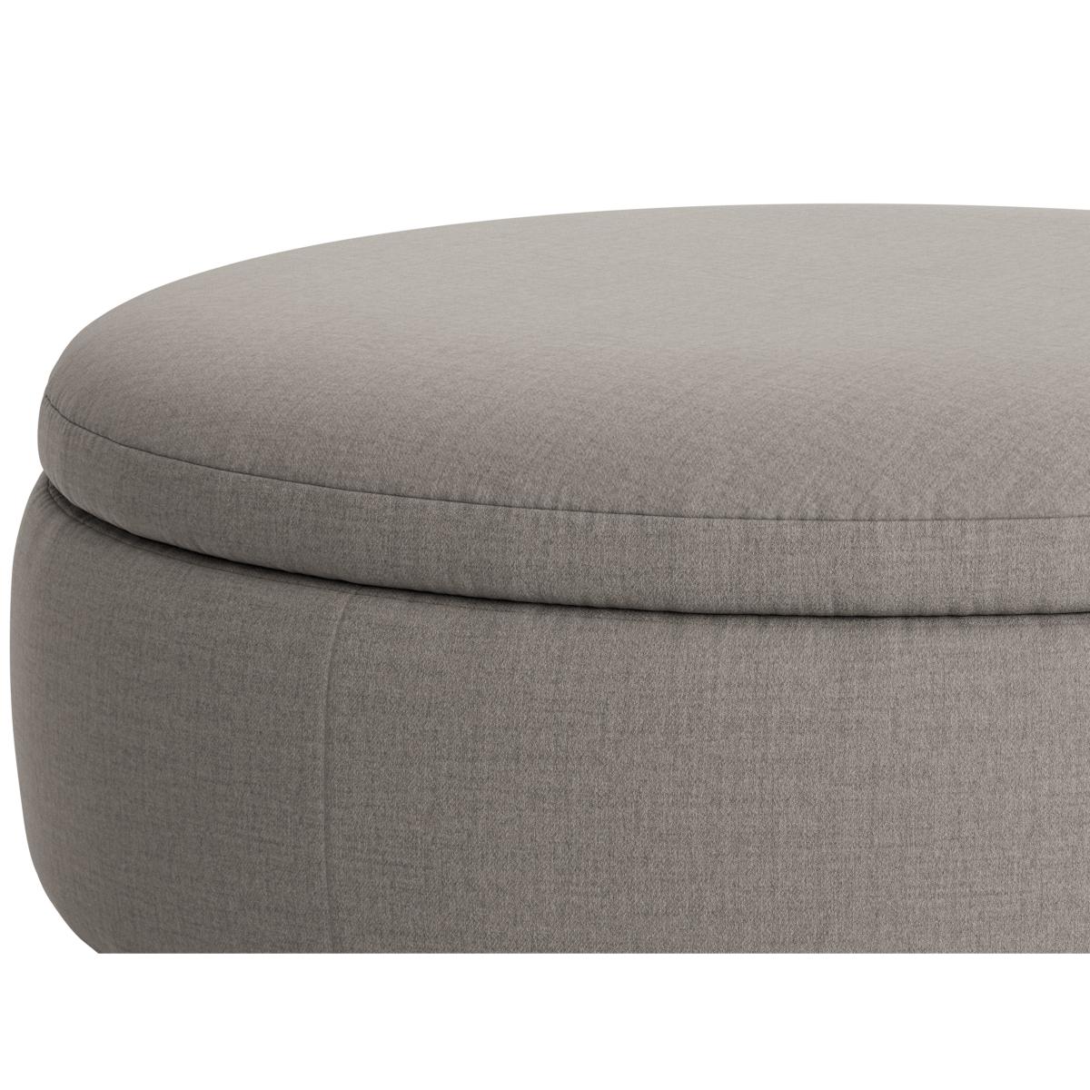 This reminds us of perfectly risen puff pastry in a massive ramekin. It's a family-sized footstool and an extra seat - with a scrummy slice of storage space beneath.