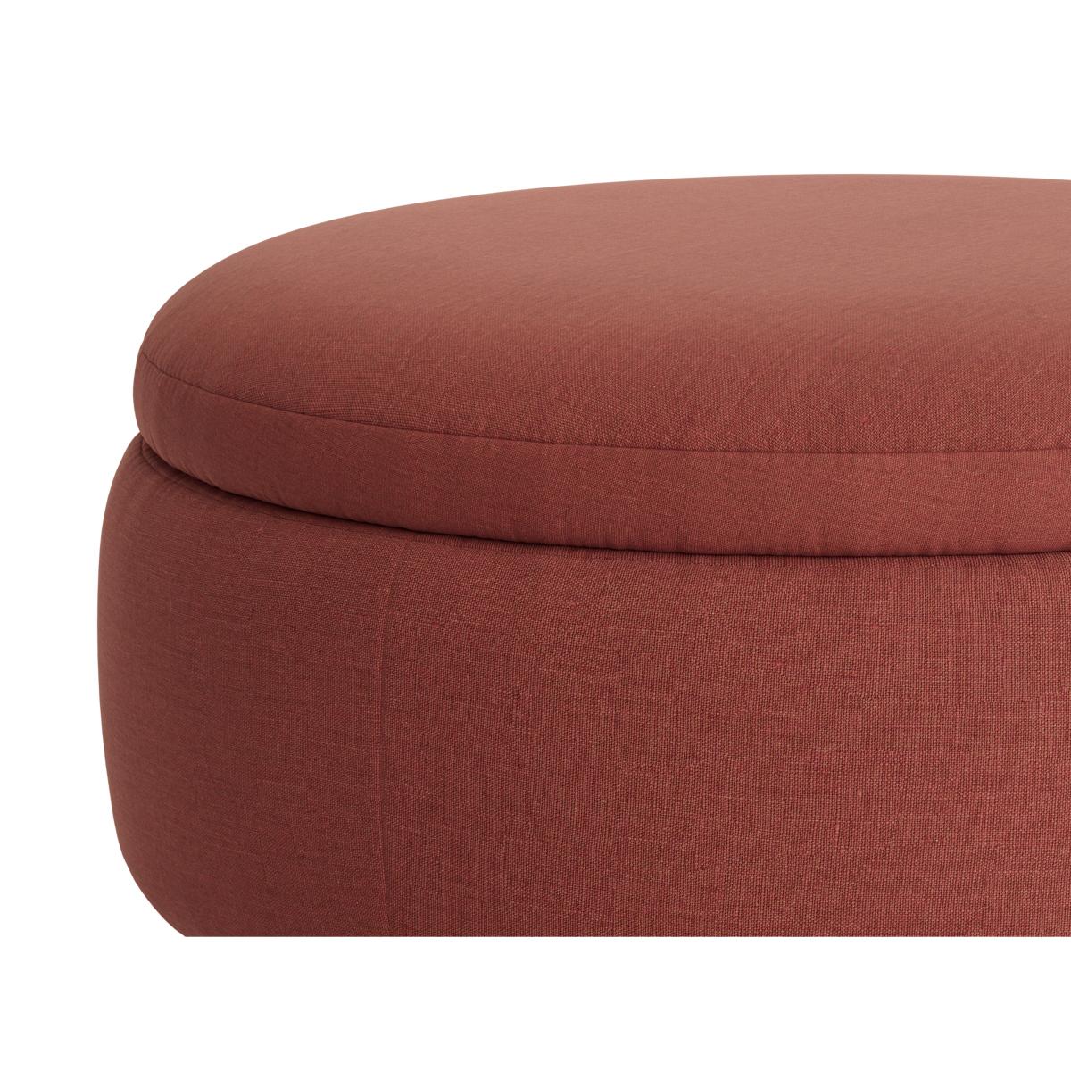 I love this footstool because of its versatile, rounded silhouette and warm, earthy tone, which makes it a great addition to both contemporary and vintage-inspired interiors. It works particularly well in relaxed living rooms, acting as an extra seat or a cosy footrest, while its generous size invites casual lounging. For styling tips, consider pairing it with soft, textured fabrics like linen or wool to enhance its comfort appeal, and mix it with layered textiles and statement rugs to create a welcoming, layered look. It's ideal for adding a pop of colour without overwhelming the space and can easily serve as a standalone piece or be grouped with other ottomans for added visual interest.