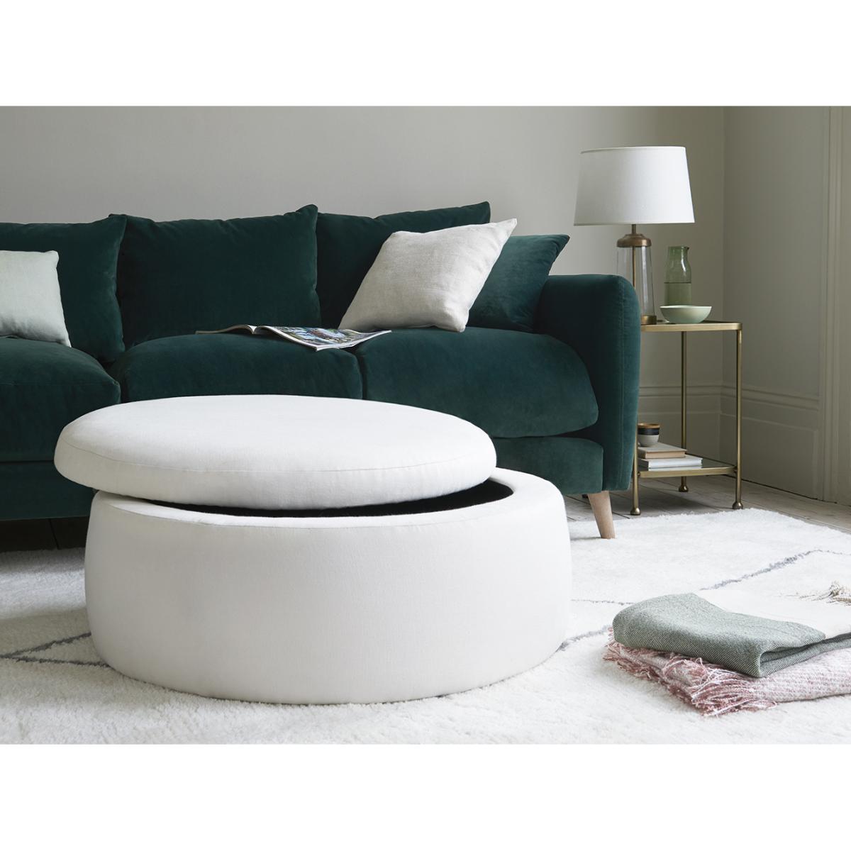 This reminds us of perfectly risen puff pastry in a massive ramekin. It's a family-sized footstool and an extra seat - with a scrummy slice of storage space beneath.