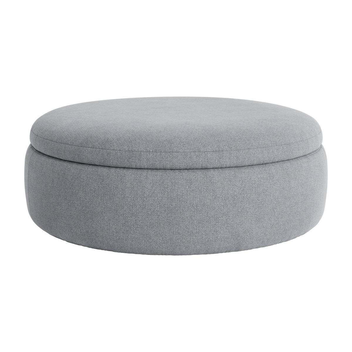 This reminds us of perfectly risen puff pastry in a massive ramekin. It's a family-sized footstool and an extra seat - with a scrummy slice of storage space beneath.