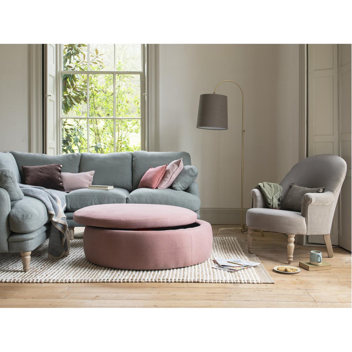 This reminds us of perfectly risen puff pastry in a massive ramekin. It's a family-sized footstool and an extra seat - with a scrummy slice of storage space beneath.