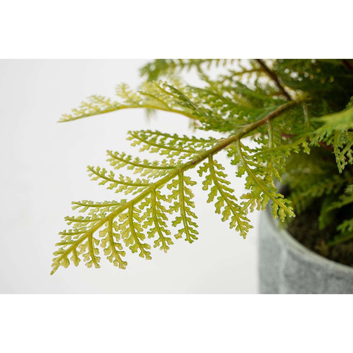 Medium-sized artificial Fern Plant. Realistic-looking high-quality reproduction. Supplied securely fixed into a grey plastic plant pot. Leaves can be easily repositioned as desired.