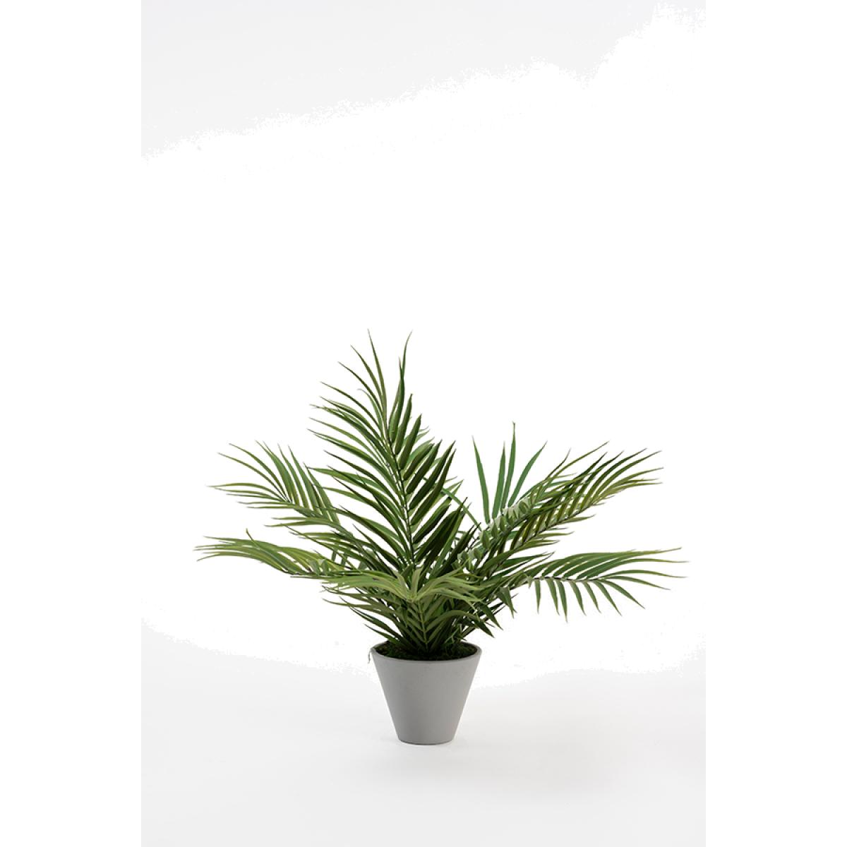 Medium-sized artificial Palm Plant. Realistic-looking high-quality reproduction. Supplied securely fixed into a grey plastic plant pot. Leaves can be easily repositioned as desired.