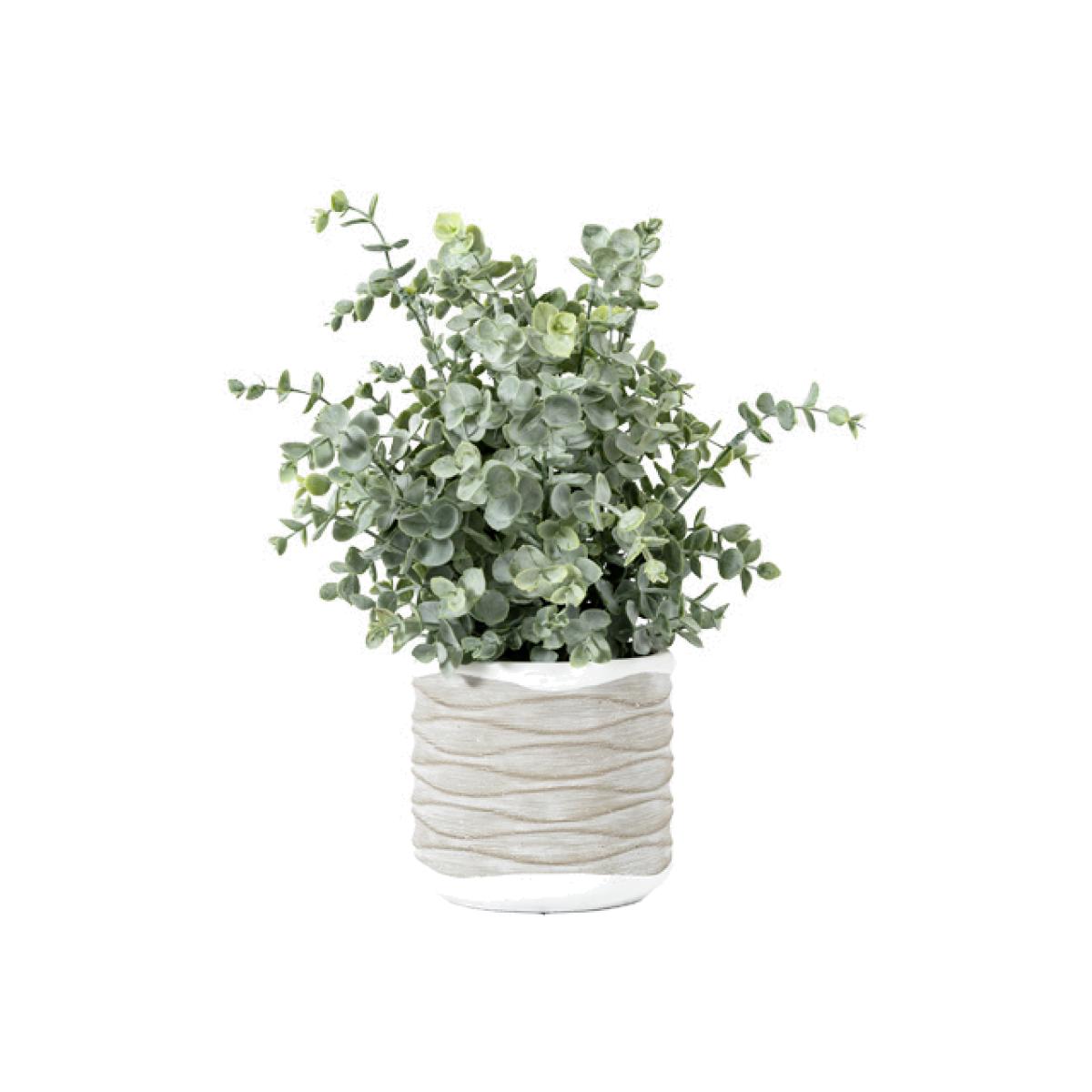 Wave hello to hassle free style with these low maintenance faux eucalyptus plants. The 2 sculptural looking Eucalyptuses are potted in 2 retro cool wavy cement pots, adding just the right splash of greenery and colour to your room, all while being low maintenance and fuss free.