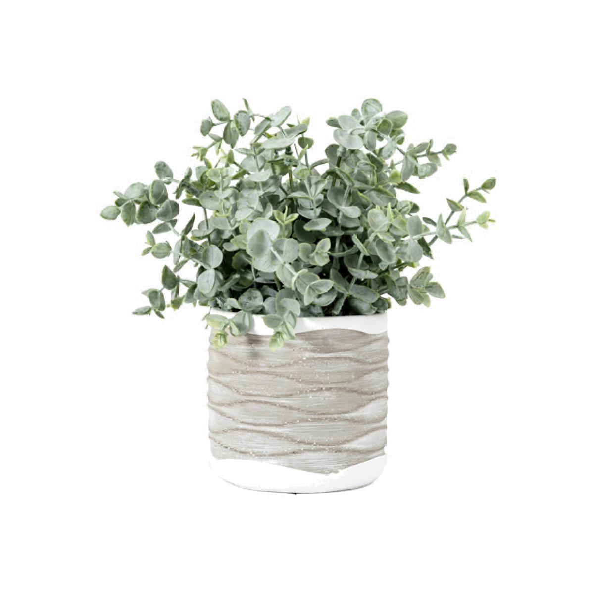 Wave hello to hassle free style with these low maintenance faux eucalyptus plants. The 2 sculptural looking Eucalyptuses are potted in 2 retro cool wavy cement pots, adding just the right splash of greenery and colour to your room, all while being low maintenance and fuss free.