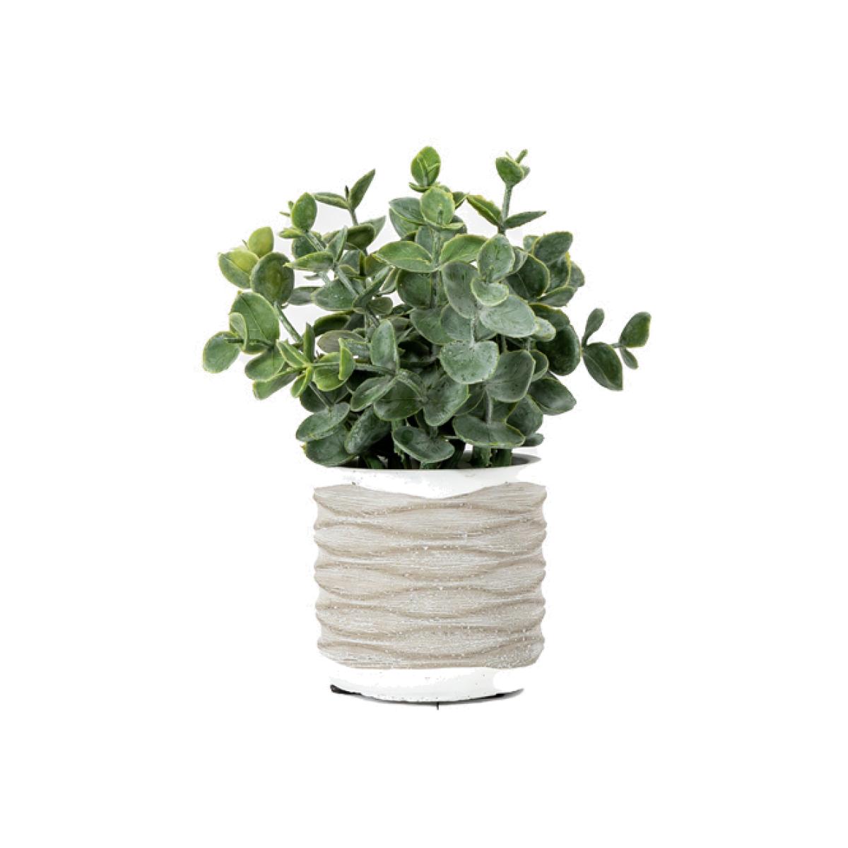 Wave hello to hassle free style with these low maintenance faux eucalyptus plants. The 2 sculptural looking Eucalyptuses are potted in 2 retro cool wavy cement pots, adding just the right splash of greenery and colour to your room, all while being low maintenance and fuss free.