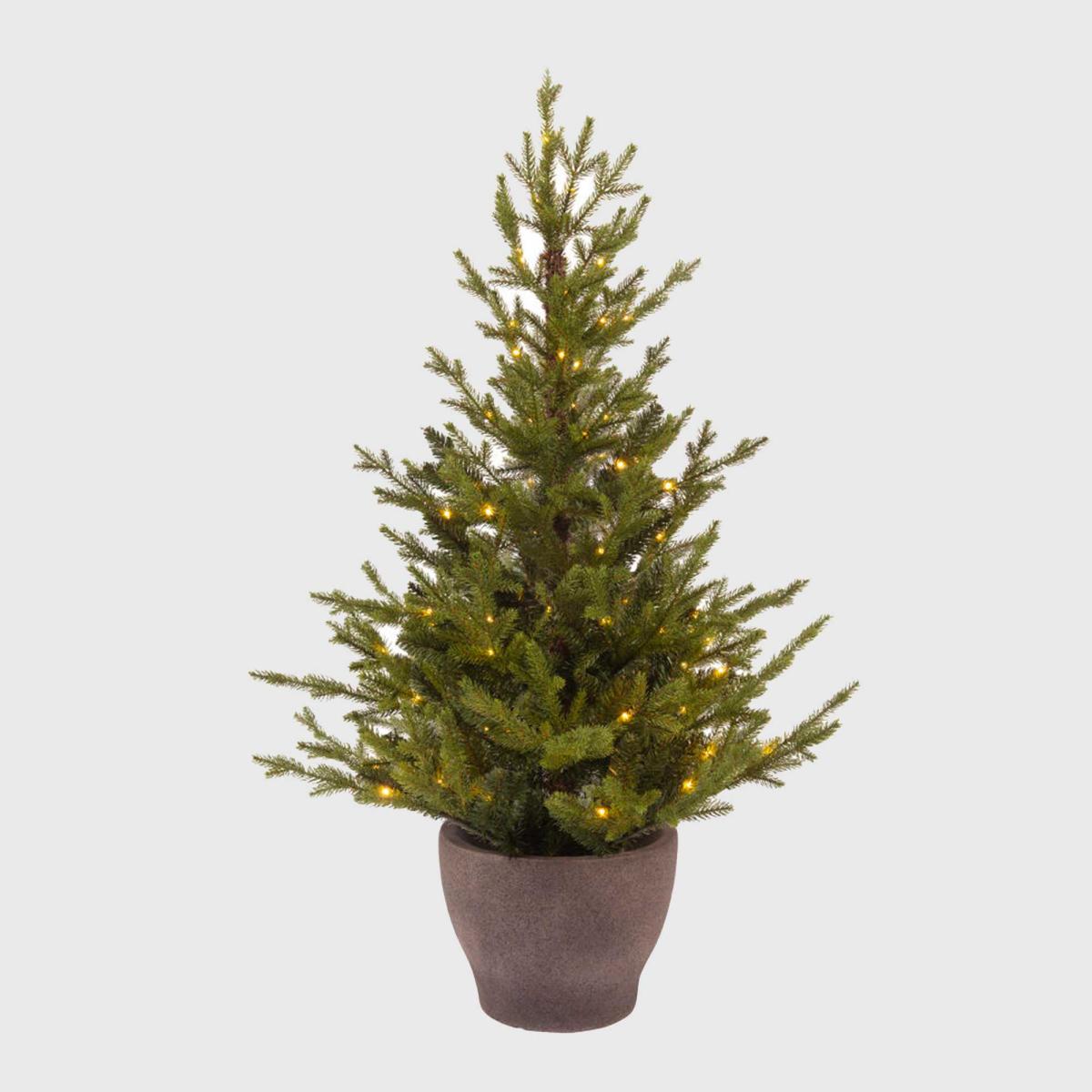 The Green Potted LED Lit Fir Tree is a beautiful 90cm miniature Christmas tree that's potted and pre-lit with 60 warm white battery-operated LEDs. It provides 8 lighting functions for various twinkling effects, allowing you to skip the hassle of stringing lights. All you need to do is decorate it to your liking and choose its location. Perfect for smaller spaces and hassle-free holiday decorating.