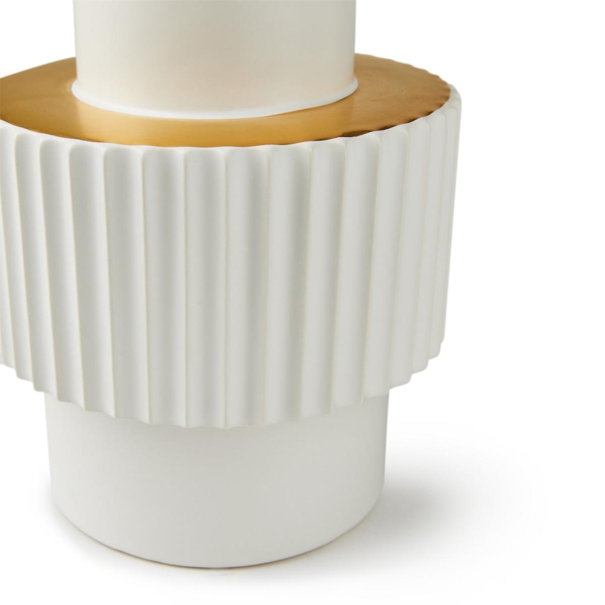 I love the Potten GearVaseS for its sleek, minimal design with a touch of texture, making it quite versatile. It works especially well in modern or contemporary interiors where clean lines and understated elegance are key. The ribbed detail adds subtle visual interest without overwhelming the space. Practical styling tips include grouping it with other neutral-toned ceramics or placing it on a wooden or marble surface to enhance its sculptural quality. It’s perfect as a standalone statement piece or as part of a curated collection of vases, and it works equally well filled with simple stems or left empty as a decorative object on its own.