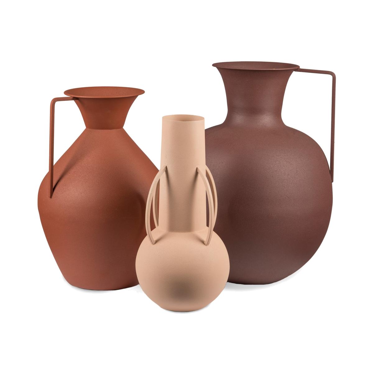 I’m a fan of these Roman vases for their pared-back shapes and soft, matte finishes - they bring a quiet sculptural quality without shouting for attention. The earthy terracotta and biscuit tones work equally well in Scandinavian-inspired rooms or more industrial loft spaces, adding warmth and texture against cool materials like concrete or steel. For easy styling, group two or three on a sideboard or mantel at staggered heights, either empty or with dried grasses or single stems. They also sit nicely alongside black-glazed ceramics or simple wooden trays, and can double up as a focal point on an otherwise plain shelf.