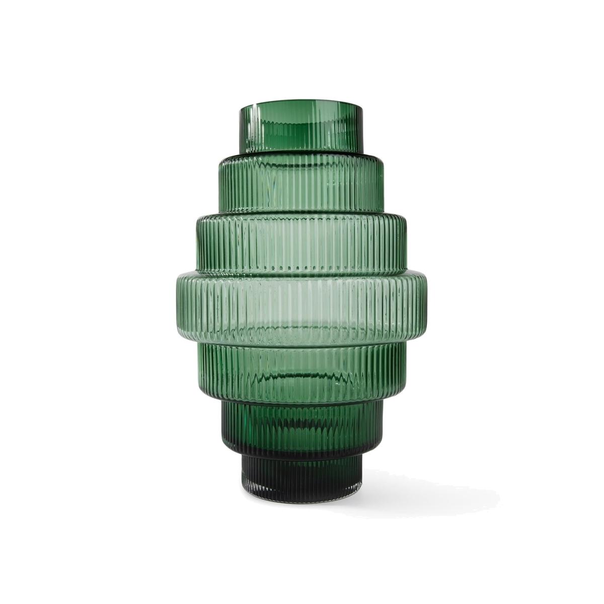 I’m a fan of the Steps vase for its bold, stepped silhouette and fine ribbed glass - it adds sculptural interest without fuss. The muted green tone works especially well in Scandi, mid-century or contemporary schemes, pairing neatly with pale wood and neutral walls. Styling tip: let it stand alone on a console or shelf with a single dried stem or a slender branch, then balance by grouping one or two smaller vases nearby. It also lifts a dark wood sideboard or sits neatly against a light marble mantle.