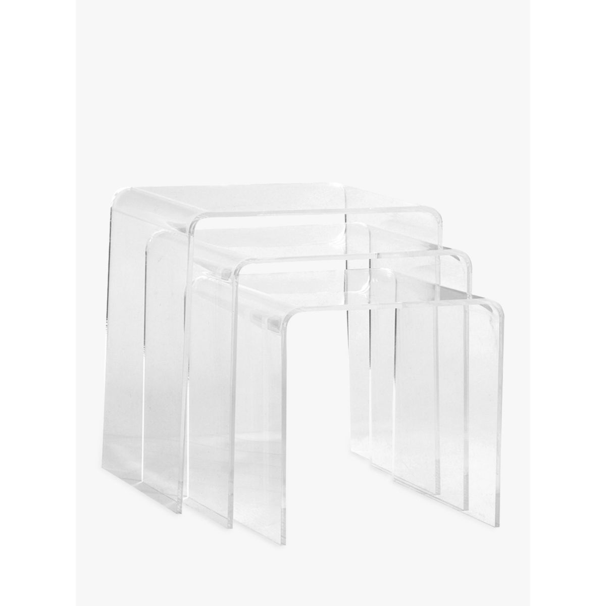 I love these clear acrylic nesting tables because they bring a modern, minimalist touch to any space without overwhelming it. Their transparent design makes them versatile-they work well in both contemporary and eclectic interiors, blending seamlessly with various colour schemes and styles. Practical styling tips include stacking them together in a corner for a sleek display or using them separately to maximise surface area for lamps, books, or decorative objects. They're also great in smaller rooms or tight spaces, as their see-through nature keeps the area feeling open and uncluttered. Overall, these tables are an elegant yet functional addition that can be easily adapted to different rooms and aesthetics.