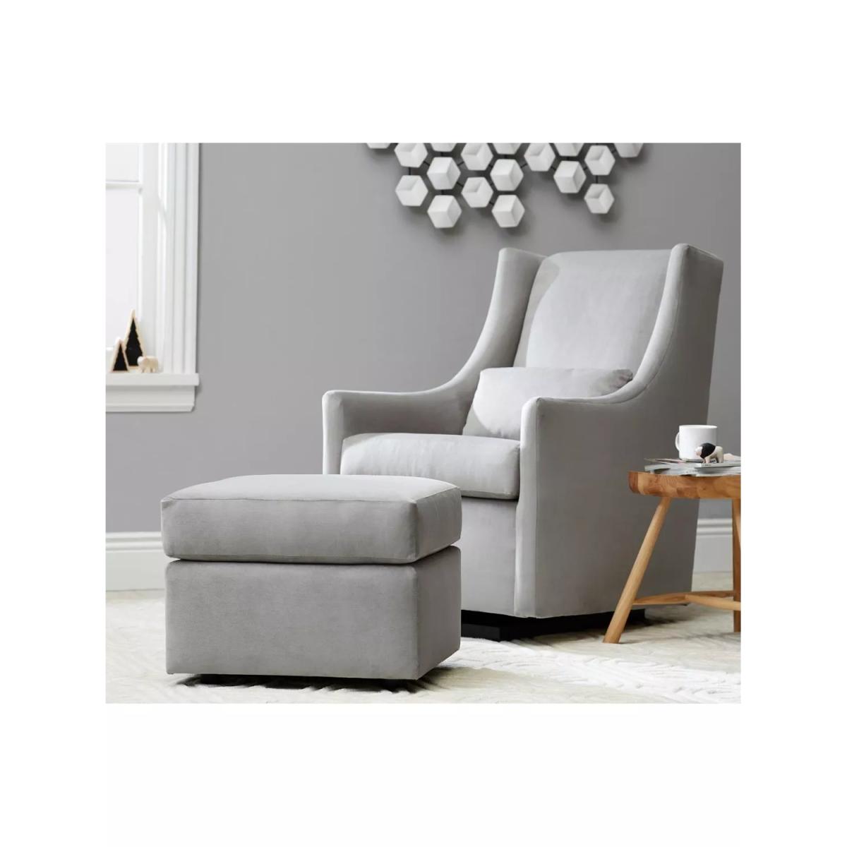 Ottoman to match the Graham gliding chair, sold separately. Polyester-wrapped flame-retardant-free cushion for a firmer feel Frame is made with sustainable wood certified by SFI (Sustainable Forestry Initiative) Cushion is made with 20% soy-based foam. Cushion wrap is made from polyester Ottoman is stationary GREENGUARD Gold Certified to contribute to healthier indoor air, keeping you and your family safer All Pottery Barn kids products are tested at third-party CPSC-accredited labs to meet or exceed all industry voluntary and regulatory safety requirements.