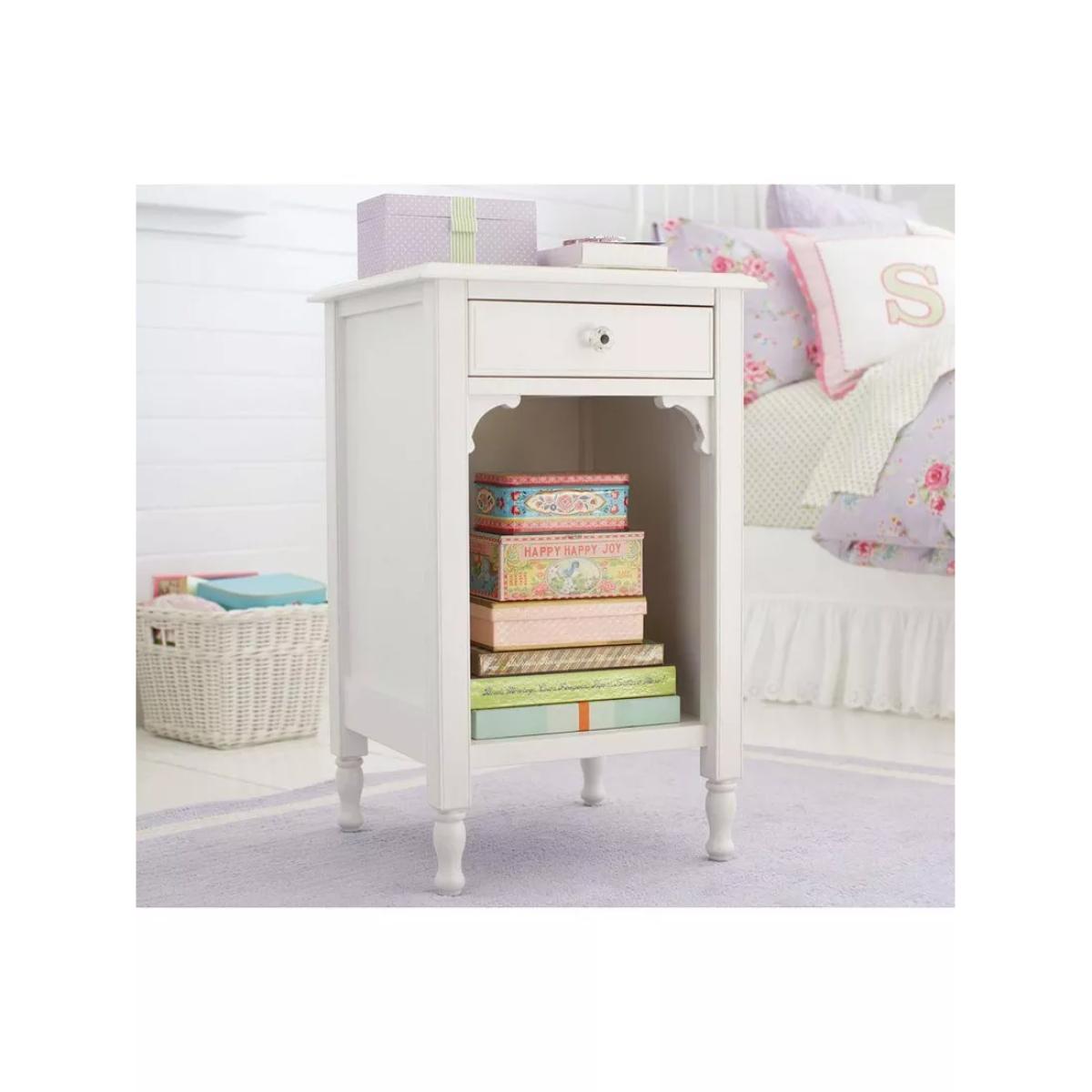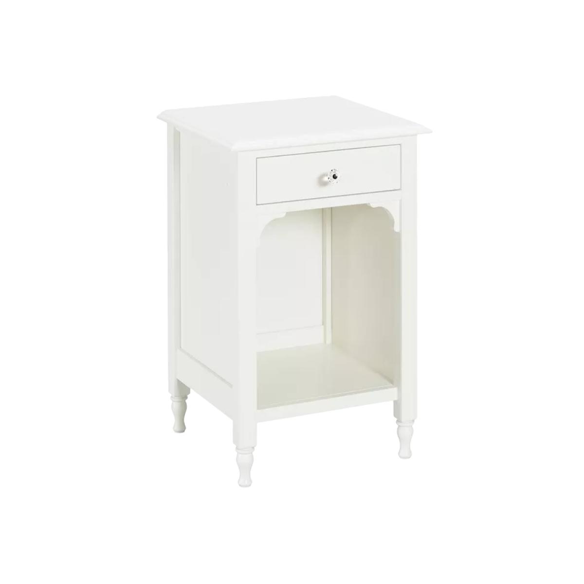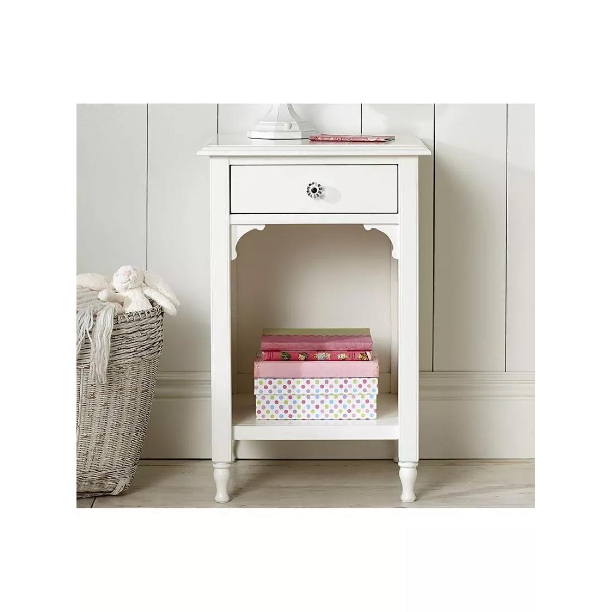 The easy charm of vintage cottage furniture is captured in the Juliette Collection. Carefully crafted bedside table with an overhanging top, lathe-turned feet and an open shelf for storing books, photo albums or toys. Features a drawer on top and a roomy open cubby below for bedtime essentials Drawers feature English dovetail joinery and waxed wooden glides for smooth motion. Sturdy half-moon safety stops keep drawers securely in place Handcrafted with a hardwood frame and MDF, an engineered wood that lends exceptional strength and ensures structural integrity over time All wood is kiln-dried, a process that ensures that the furniture will never split, warp, crack or mildew The use of veneers results in high-quality furniture with flawless surfaces and consistent colour tones Kiln-dried hardwood helps prevent warping, splitting, cracking and developing mildew Finished in child-safe, water-based paint which provides durability, depth of colour and richness to each piece of furniture Simple assembly required Adjustable levellers ensure stability on uneven floors GREENGUARD Gold Certified to contribute to healthier indoor air, keeping you and your family safer All Pottery Barn kids products are tested at third-party CPSC-accredited labs to meet or exceed all industry voluntary and regulatory safety requirements.