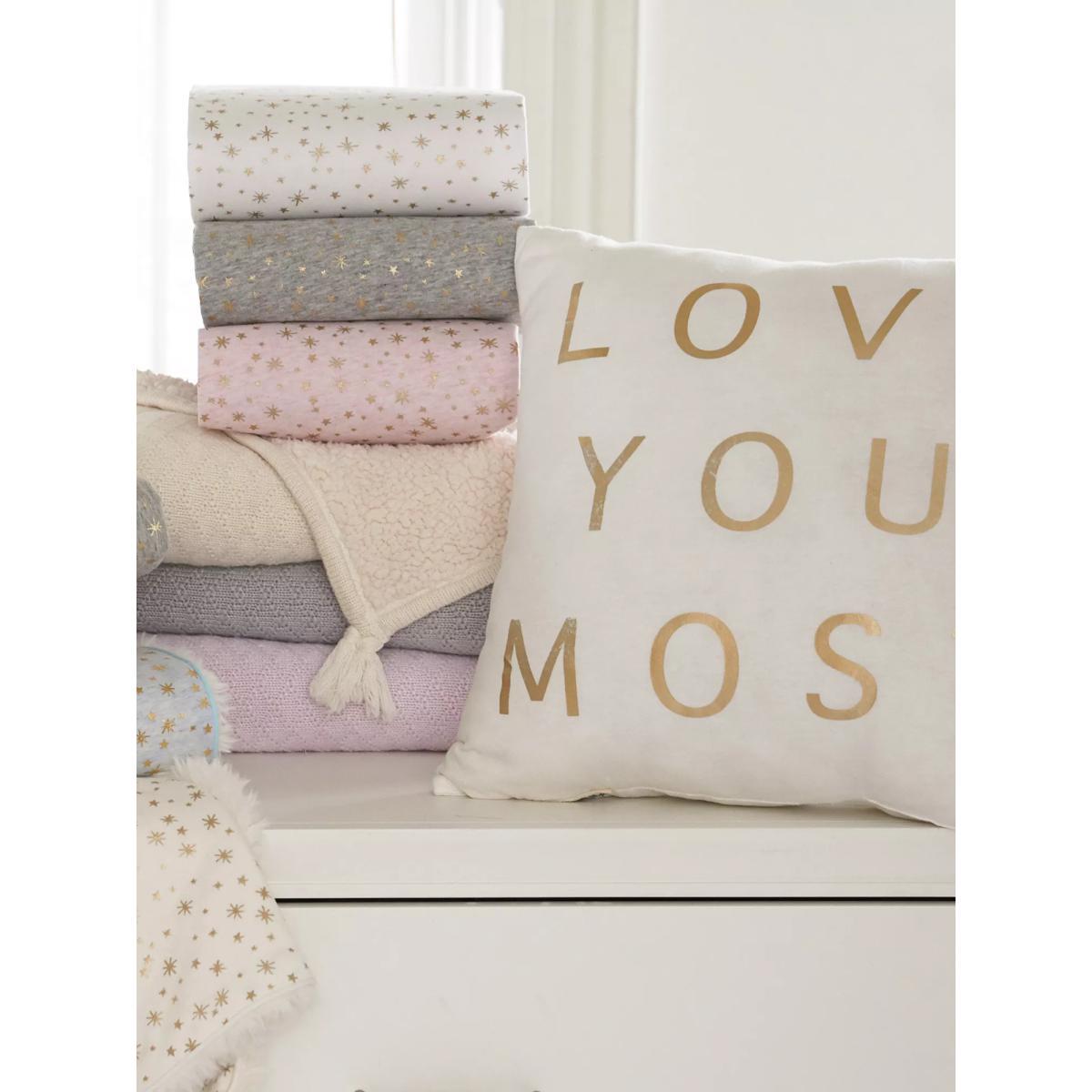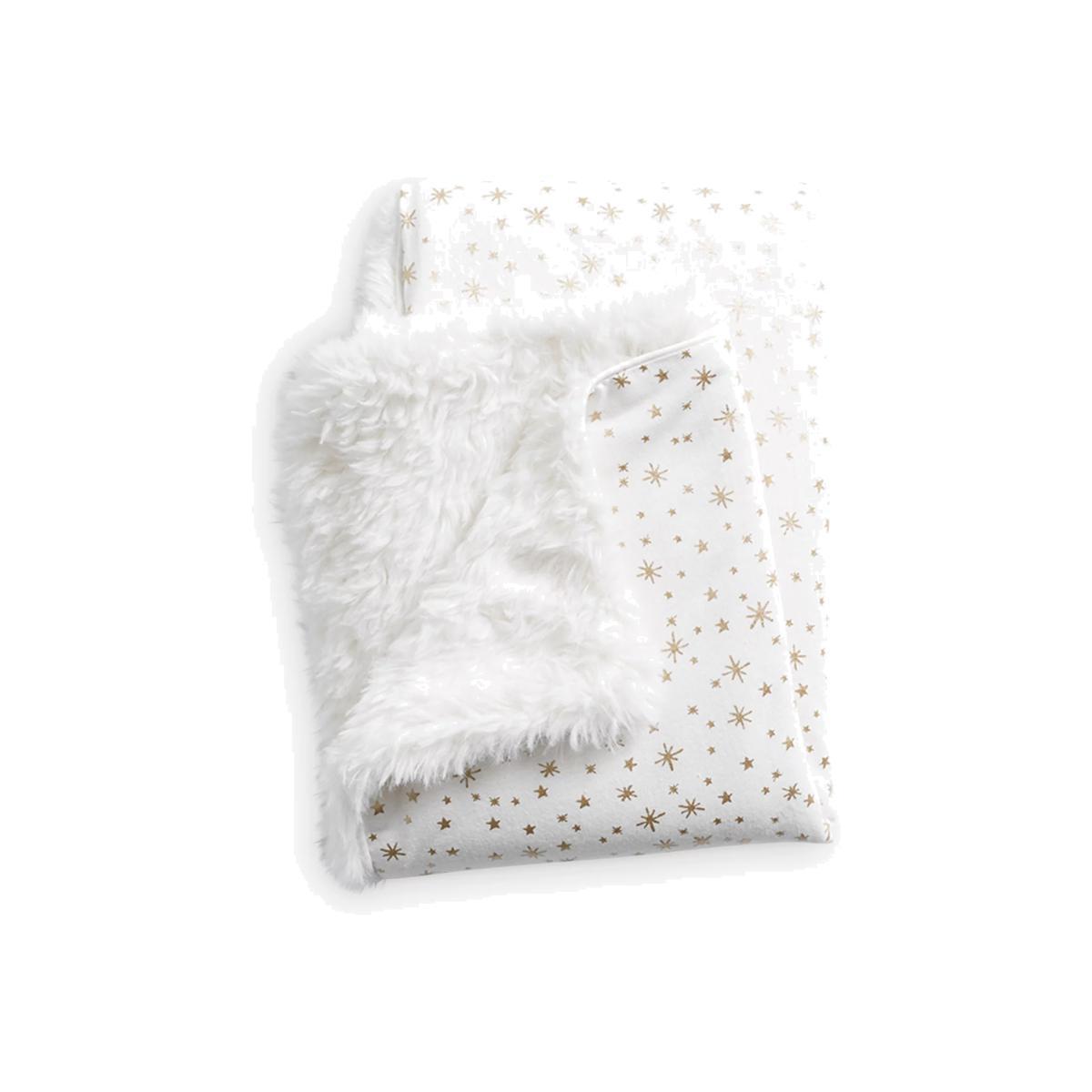 I love this baby blanket for its cosy Sherpa lining and subtle metallic star detailing, which adds a gentle shimmer without overpowering a nursery’s decor. It works particularly well in modern or minimal interiors, providing a cosy contrast to sleek furniture and soft pastel tones. Practical styling tips include draping it over a nursery chair or cot for added texture, or layering it with other plush textiles to create a warm, inviting space. Its neutral white base with gold accents makes it versatile enough to coordinate with a range of colour schemes, making it both functional and decorative.