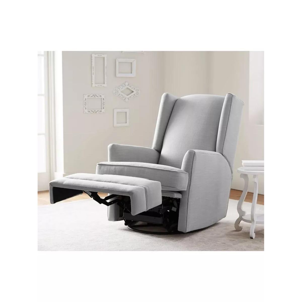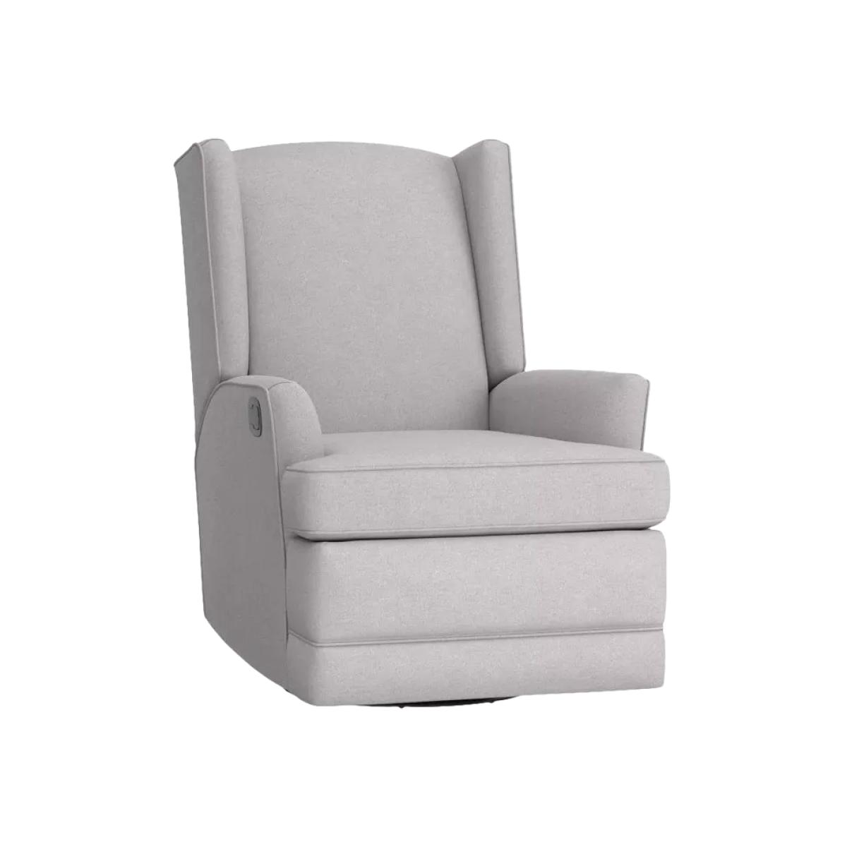 Rock, recline and swivel with this nursery staple that adds modern flair to baby's space. Designed with a high square back, ultra-plush arms and a worn, vintage fabric look, it's the cosiest place to bond with your little one. Chair swivels 360 degrees and has three recline positions: sitting, reading and full recline Manual recliners equipped with recliner mechanism on the exterior, right-hand side between the armrest and seat cushion Recliner mechanisms are designed to be easily used while holding your baby Once the Modern Wingback Recliner is reclined it will be stationary and will not move Expertly crafted with a laminated hardwood frame and no sag steel sinuous springs provide cushion support Tongue and groove joinery ensures lasting strength and endurance GREENGUARD Gold Certified to contribute to healthier indoor air, keeping you and your family safer To prevent injury, chair should be placed on a flat, even surface while in use All Pottery Barn kids products are tested at third-party CPSC-accredited labs to meet or exceed all industry voluntary and regulatory safety requirements.