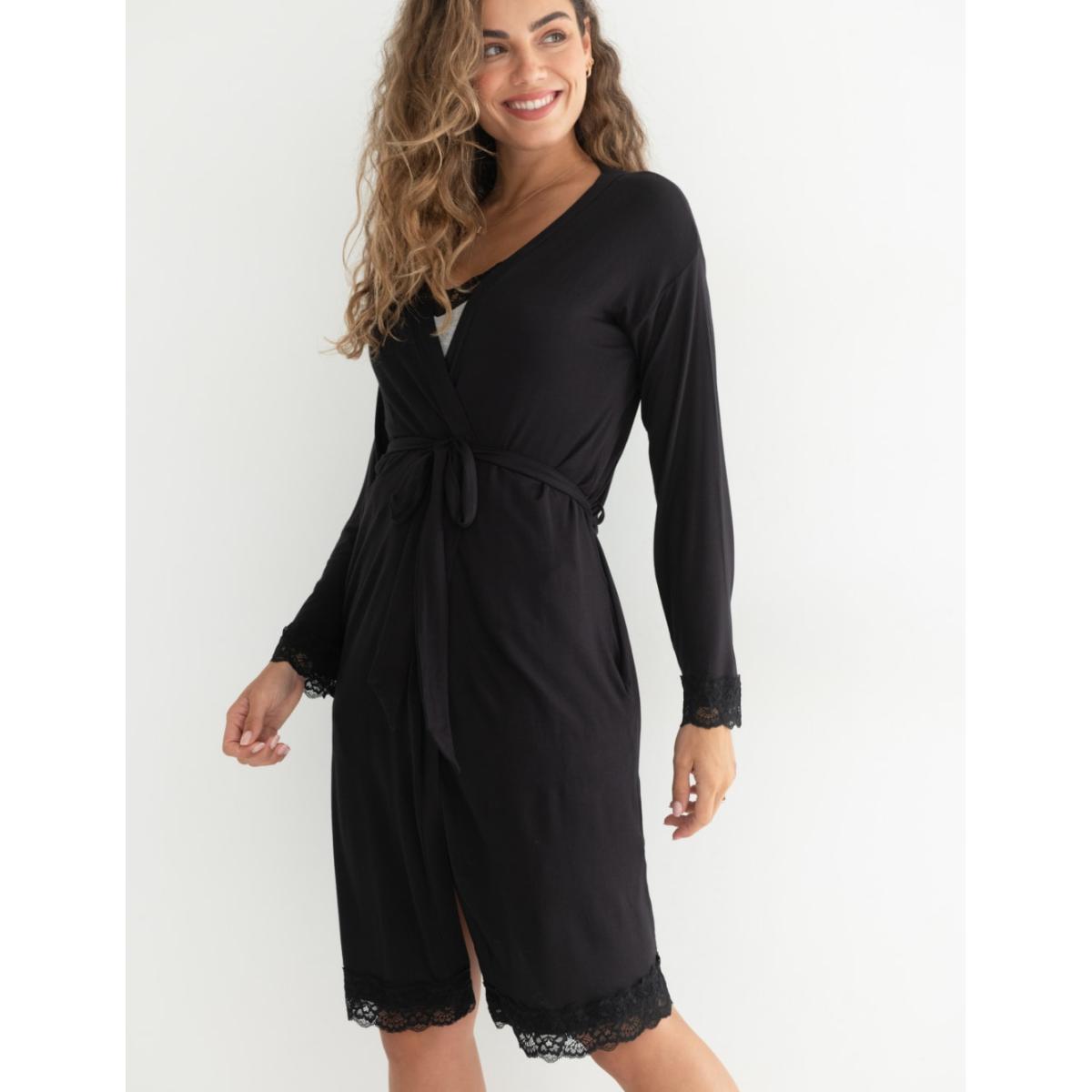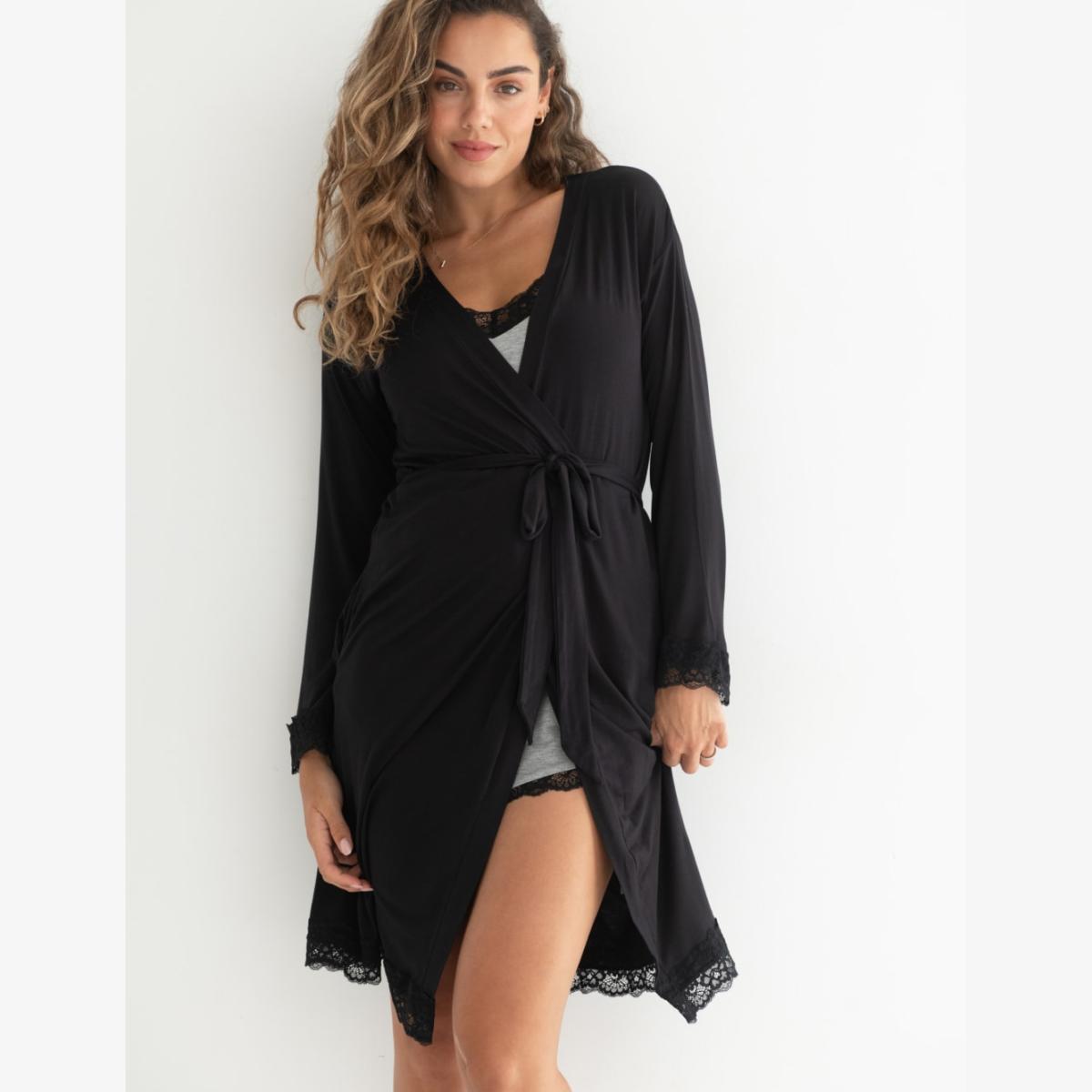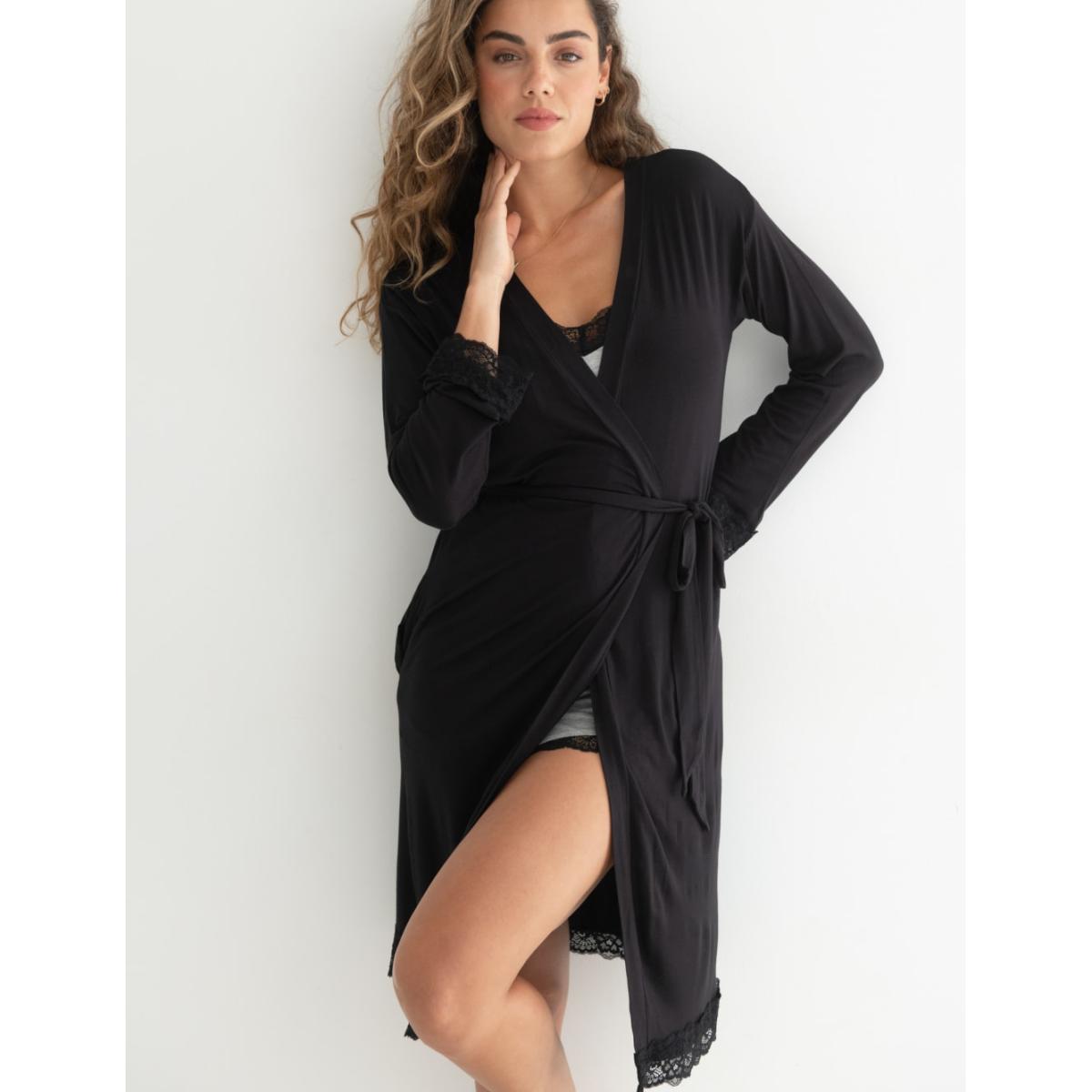 Pour Moi Women's Sofa Loves Lace Jersey Wrap Dressing Gown - 22 - Black, Black