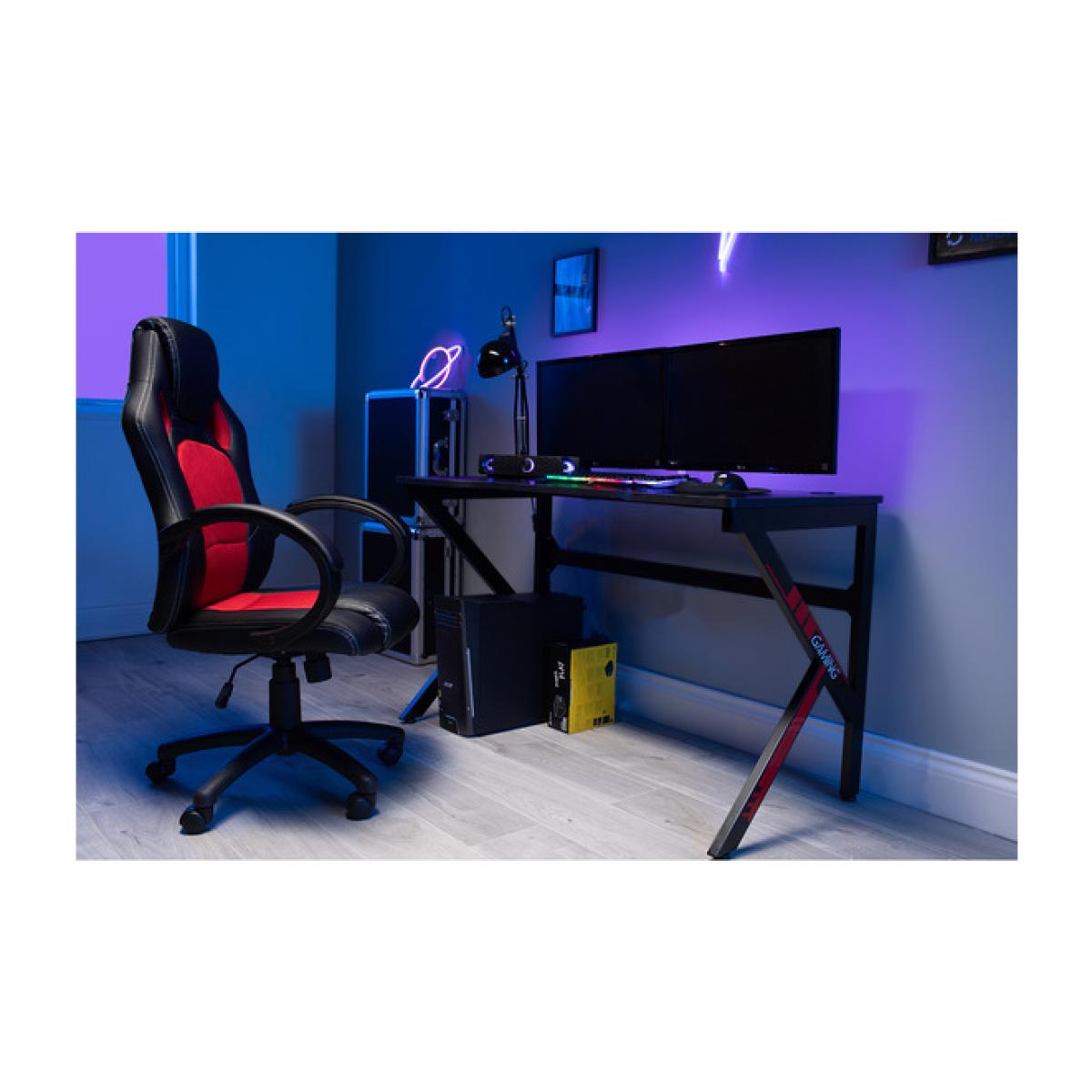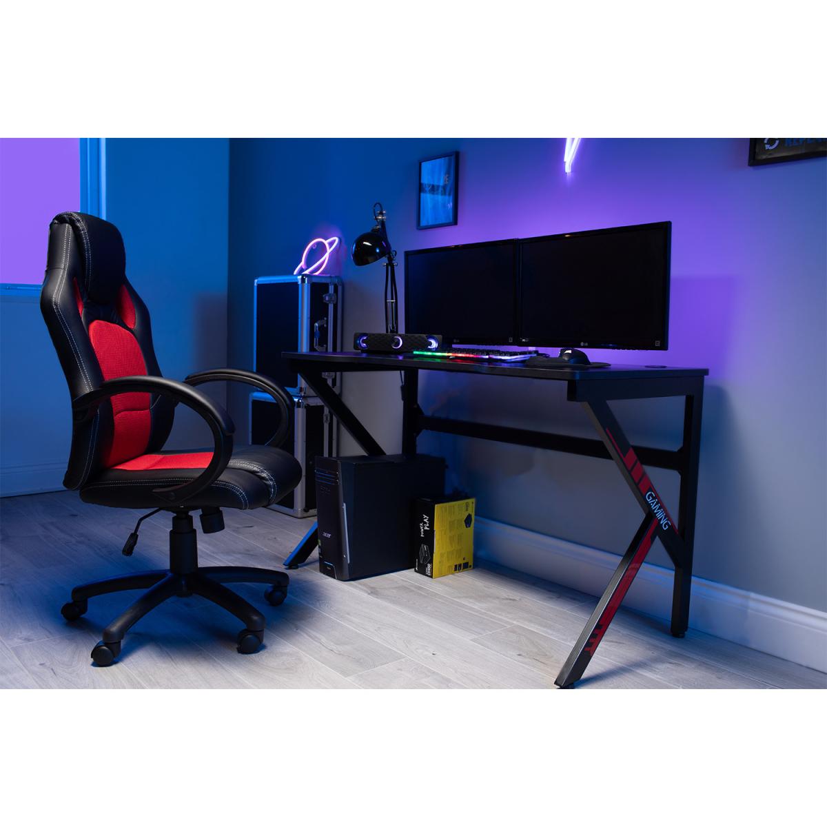 The Power C desk was created with the gamer in mind and is beautifully designed with a contemporary finish and slim profile - Perfect for those smaller corners. The simplified desk, is less bulky than our other models, has space for two monitors, and can bare weights up to 176lbs. Built for a quick and easy setup, the Power C gaming desk uses a stable K-style balanced build, to ensure your precious laptop or desktop is kept safe! Build this desk in under 30 minutes, and quickly optimise your set-up - perfect for those balancing home and work life! This desk features a black and red/orange colour palette in a premium matte finish - sure to blend with any modern set up!The Power C gaming desk is sure to be a smart addition to your bedroom or home office.