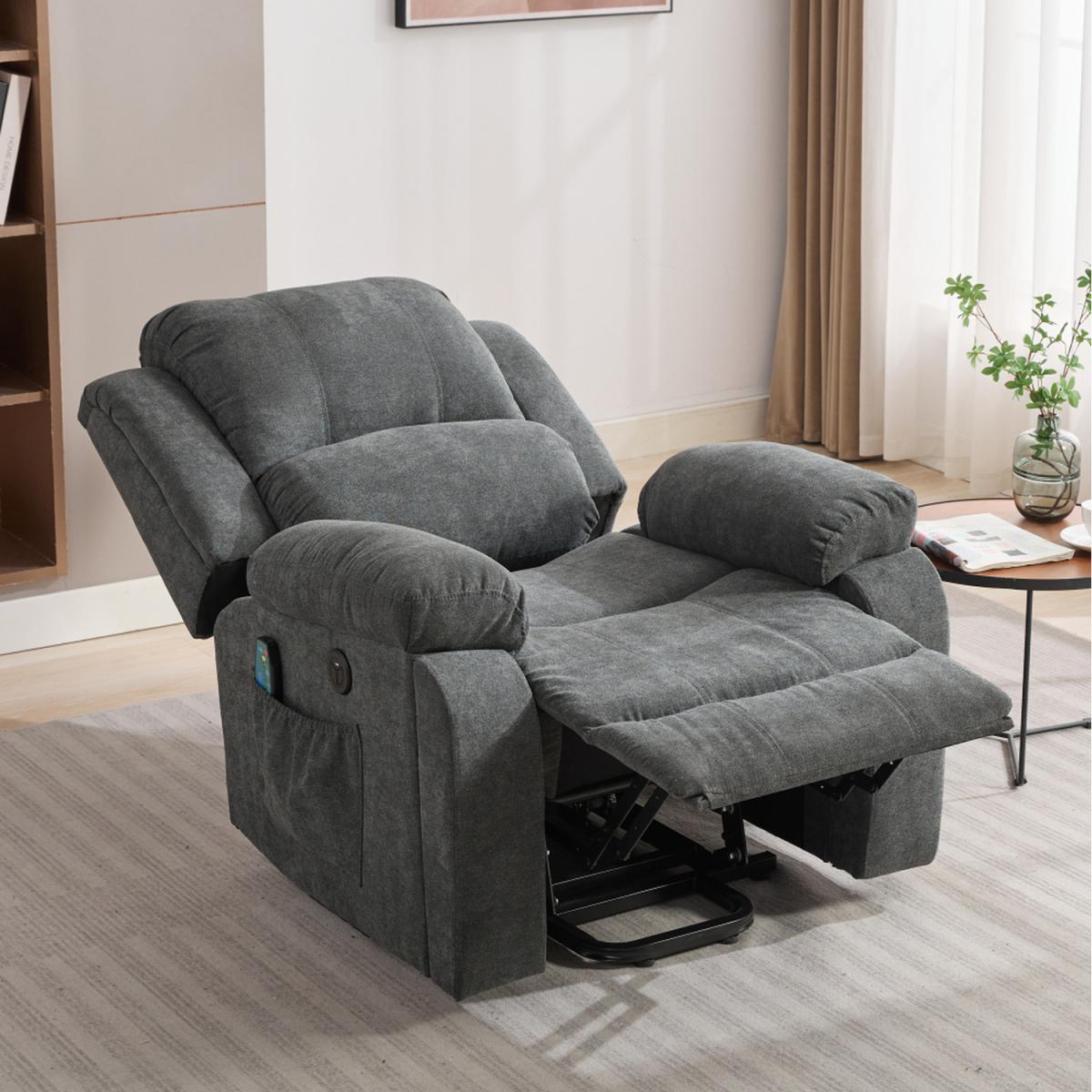 Multi-Functions: Equipped with concealed cup holders, it is convenient to save your drink, enjoy wonderful home theatering experience. The backrest can be freely adjusted between 90 degrees and 140 degrees, which perfectly meets all daily needs of rest, entertainment or reading. Whether it is a busy workday or a leisure weekend, the comfortable recliner will accompany you. The best recliners for your home are the ones that do it all - reclining, massaging, and heating. This chair make every day feel like a spa day.10 different modes meet your demand of different massage. The 4 areas of massage focus back, lumbar, thigh, leg. You can freely choose the intensity and location of massage. Lumbar heating function with massage to make your waist more comfortable Modern style and functionality merge together with single motor and heavy duty mechanism, lay back or lift and tilt to stand, smoothly adjust to any customized position which provide ultimate lounging experience. Plus, it comes with side pouch for magazines, books, and remotes, meaning once you're settled in, you won't have to worry about getting up to get a drink or turn the TV on. Whether you're reading a book or watching a movie, a comfortable chair can relieve the stress of a busy day. The backrest, seat and armrests are all designed with padded pillows to provide support and comfort, and the high backrest, thick seat cushions and premium non-slip interior provide a very comfortable sitting experience and enhanced safety Whether you're reading a book or watching a movie, a comfortable chair can relieve the stress of a busy day. The backrest, seat and armrests are all designed with padded pillows to provide support and comfort, and the high backrest, thick seat cushions and premium non-slip interior provide a very comfortable sitting experience and enhanced safety Lift Chairs Recliners for Elderly Power lift helps the elders stand up easily, and reduces their backs and knees pressure. By pressing the control panel buttons on the right armrest, it will lift or recline smoothly and quietly, it enables people to stand up easily. It features reclining to different angles, you can lie down in a cozy position and take a nap, or watching TV. The footrest can be extended simultaneously with the backrest which allows you to stretch your body Massage and Heating The electric lift chairs with four points massage (back, lumbar, thigh, leg) with five adjustable modes and two intensity options, offers you a full body massage at your own home. Backrest with lumbar heating function, will give extra comfort and helping to improve chronic lumbar diseases. There is a timer function in 15/30/60 minutes which is convenient for you to set massaging time Elegant and User-friendly Electric Lift Chair designed in classic style with an elegant fabric surface. Two extra side storage bags to hold remote controls, magazines and so on, great for watching TV, reading in bedroom, living room. The power recliner chair is with turdy wood and metal frame in durable and safe quality. The 25000 times heavy-duty safe quality tested power lift and recline motor also very reliable Easy Assembly and Worry-free Service You will get 2 boxes, it takes only several steps to assemble the electric lift chair, all parts and instruction included, no screw needed. Due to the difference between the light and the computer screen, there may be some color difference, please understand. Please feel free to contact us if you have any questions, we will always be there for you, and hope we will bring you the best shopping experience
