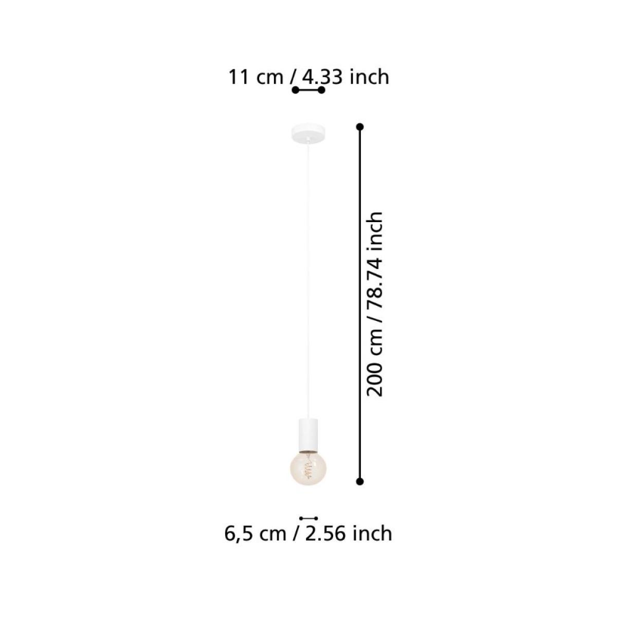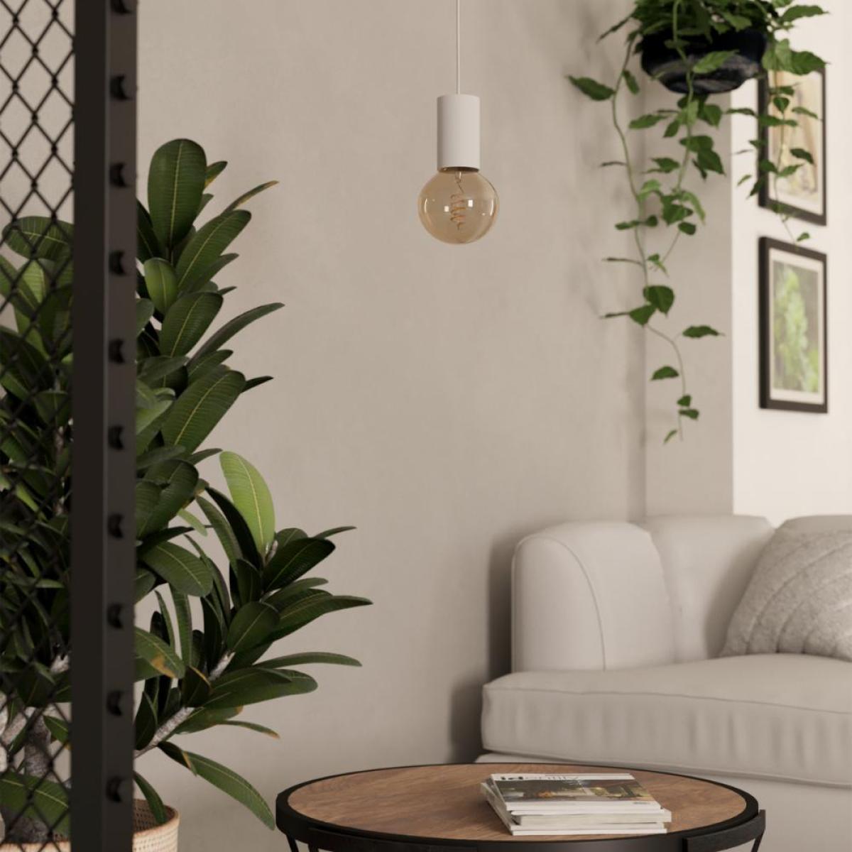 The consists of a white metal canopy with a suspended white lamp holder, which showcases an exposed design element when a lightbulb is installed. Thanks to its minimalist look and visible light source, it can be integrated into modern and Scandinavian interiors and offers ambient lighting for every room, whether in the living room or above the dining room table. The product has an E27 lamp holder and requires 1 x E27 lightbulb, which is not included.