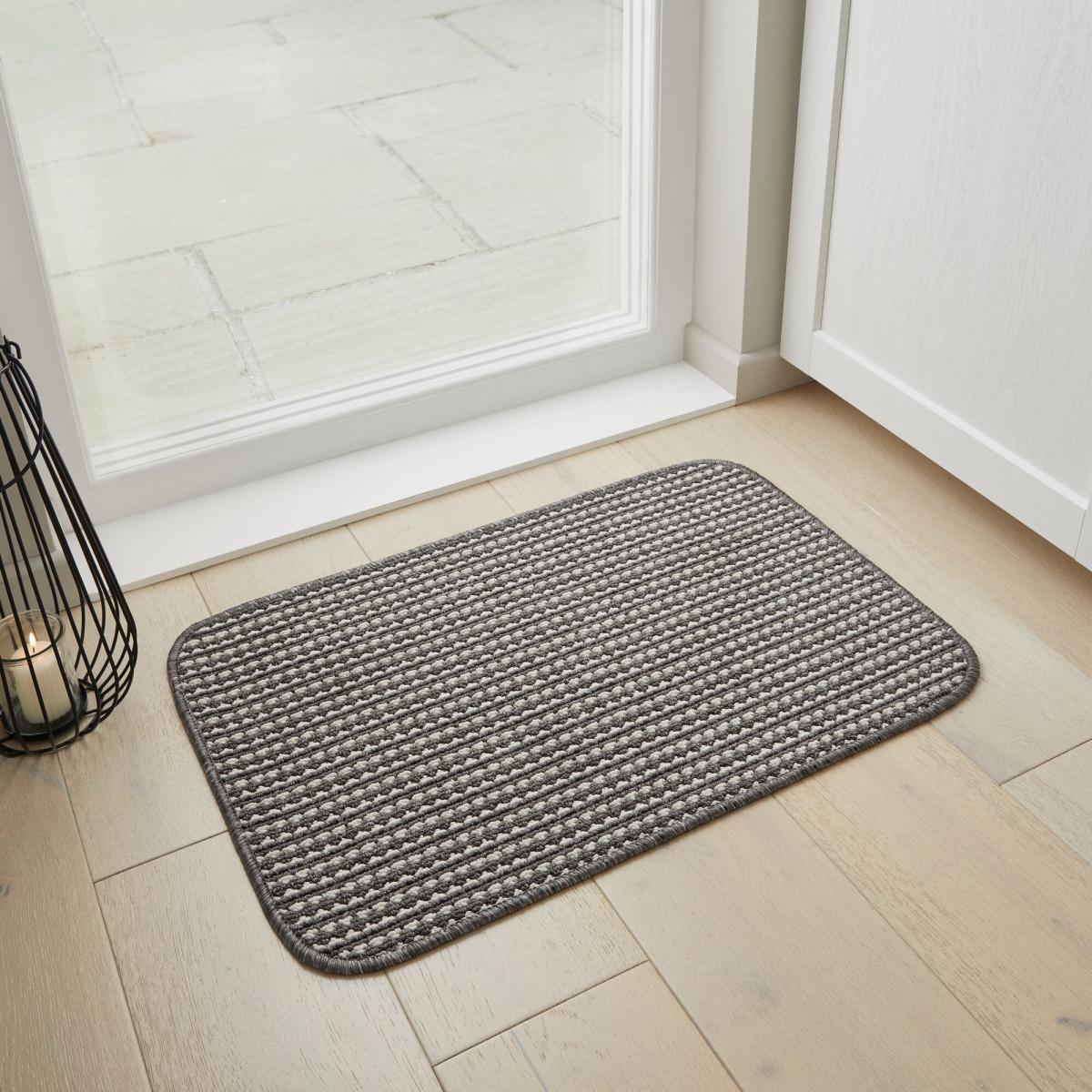 * Machine washable* Hard wearing* Perfect for your doorway The Practi Dana Washable Doormat is the perfect upgrade for a busy home. Made from 100% Polypropylene the durability of this doormat does not compromise the style. Woven with a bobbled stripe design to tuck into high traffic areas around the home. For any spills and messes, the doormat can be easily washed.
