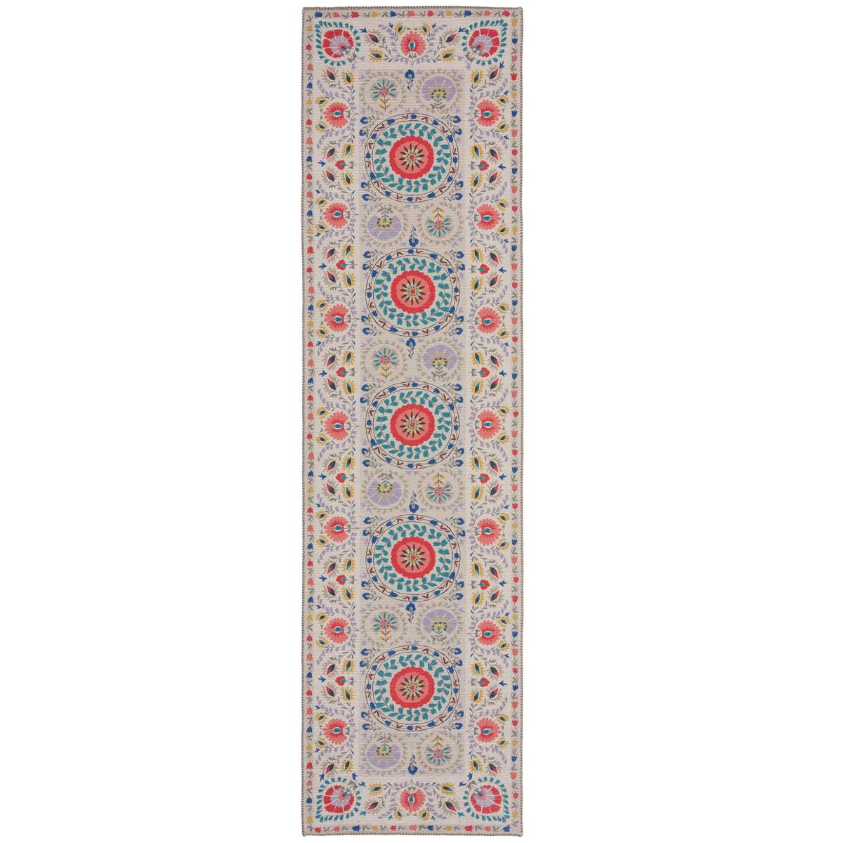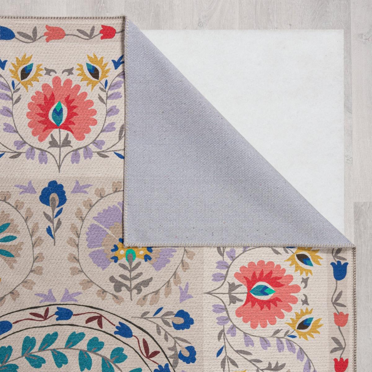 * Machine Washable runner* Floral design* Soft touch cotton blend* Perfect for hallways and bedrooms Transform your hallways and bedrooms into vibrant and inviting spaces with the Hani Floral Washable runner. Its boho-style floral design, adorned with bright-colored accents, adds a touch of personality to any room. Made from a soft and machine washable cotton blend, this Washable runner is both stylish and practical. Let the Hani Floral Washable runner make a statement as you walk through your home. Care: Shake or vacuum to remove and loosen fibres, dirt and debris using a nozzle attachment. In the case of spillage, blot with a clean cloth. Place into the washing machine on a gentle cycle at 30 degrees and air-dry flat. Due to the nature of cotton expect a small amount of shrinkage after washing. For best results lay flat and reshape as soon as possible. We recommend our small and medium size washable rugs up to 120 x 170 will fit most washing machines sizes between 8 - 10kg. Please check your manufacturer guidelines before washing and do not overload the drum. For Large and High pile washable rugs a laundrette service may be required.
