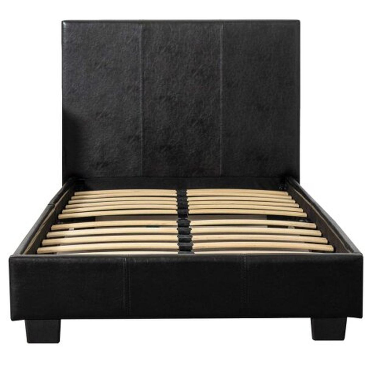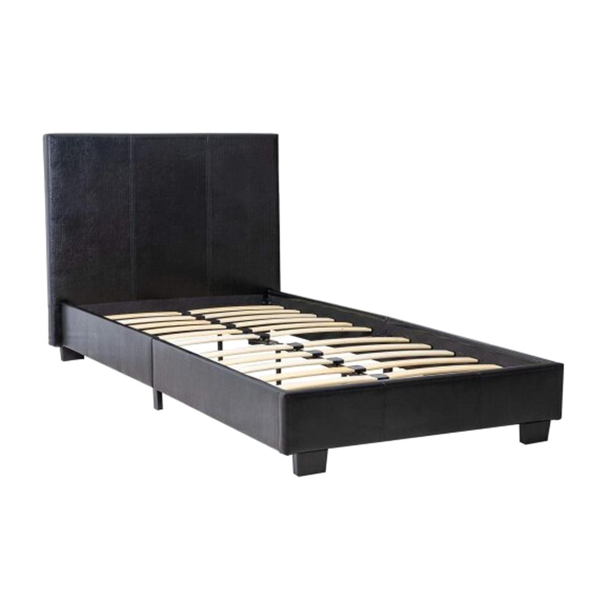 The Prado Faux Leather bed frame in Dark Chocolate Black. It will look excellent in any room. With excellent sturdy build quality and its low centre of gravity, this bed is strong yet stylish & elegant to fit the room around it. The Bed has a slatted rib cage bed with a centre metal rail making it extra strong for most types of mattresses. The faux leather and fine stitching give it a modern and classy look while the supportive sprung base will work with your mattress to give you a comfortable night's sleep and prolong mattress life. The brown faux leather bed frame is stylish and elegant, with it's touch of fine stitching and low centre of gravity this modern bed will compliment many interiors. The bed has a sprung slatted rib cage bed with a centre metal rail making it extra strong for most types of mattresses. Mattress is not included. Suitable for a UK Standard 3FT mattress. DIMENSIONS (approx): 3F. T- W99 x L207 x H89cmASSEMBL. Y REQUIRED: Arrives flat packed and requires easy home assembly.