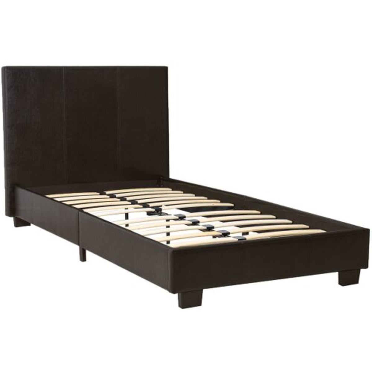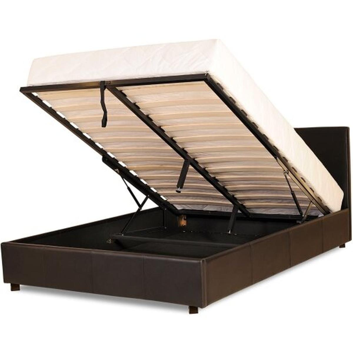 Contemporary style bed frame upholstered in strong PU leather fabric. This frame has a sprung slatted base with natural bounce, adjusting to where pressure is most exerted to provide greater comfort. The Prado bed, with storage, features hydraulic gas lift arms that raise the mattress base to reveal a storage space as big as the bed. The frame will remain upright once lifted, which allows both hands free to remove or store items underneath the bed. The fabric used to finish the Faux Linen bed is high quality and very durable. The Prado Gas Lift Ottoman Bed is stylishly designed. It is upholstered in a soft faux Leather & available in brown or black. The frame will remain upright once lifted, which allows both hands free to remove or store items underneath the bed. Features a stitched headboard and a strong sprung wooden slat system. The slatted rib cage base is reinforced with a centre rail and support legs for extra stability and durability. Overall bed frame dimensions: L203cm x W102cm x H88cm. Arrives flat packed for quick and efficient transportation and requires easy home assembly.(MATTRESS NOT INCLUDED, BED FRAME ONLY).