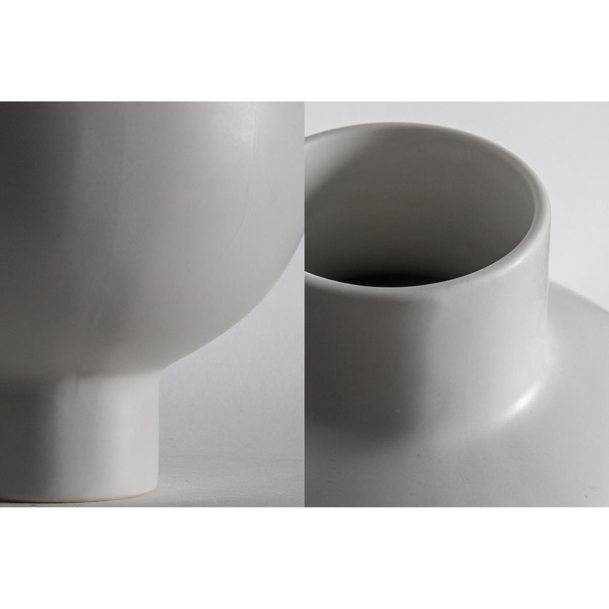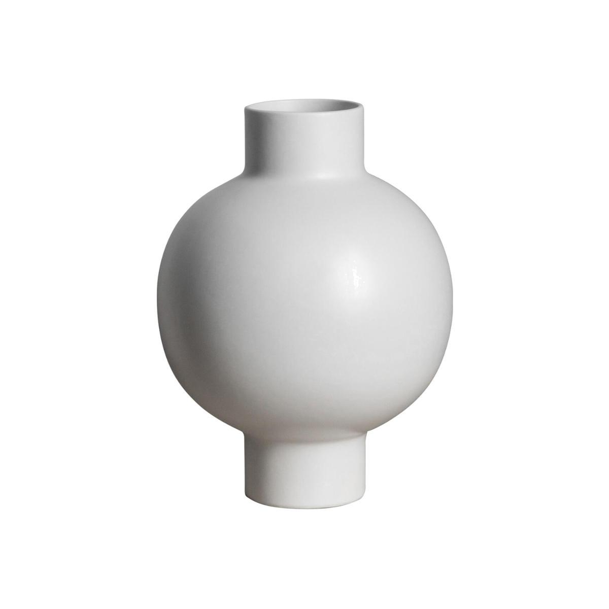 I love this white round vase for its clean, versatile look that effortlessly suits both contemporary and minimalist interiors. Its simple form makes it a great centrepiece on a dining or side table, or as a statement piece on a mantle or shelf. To create visual interest, try pairing it with dried flowers, leafy branches, or even leaving it empty for a sleek, uncluttered aesthetic. It works particularly well in neutral colour schemes, but can also serve as a crisp contrast in more colourful spaces. Practical styling tips include experimenting with different heights of stems to emphasise its shape, or grouping it with other vases of varying sizes and textures to add depth. Overall, this is a flexible piece that enhances various interior styles with its understated elegance.