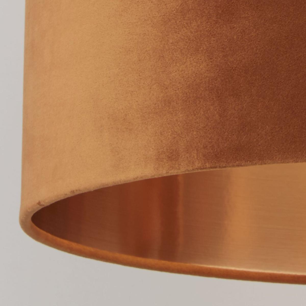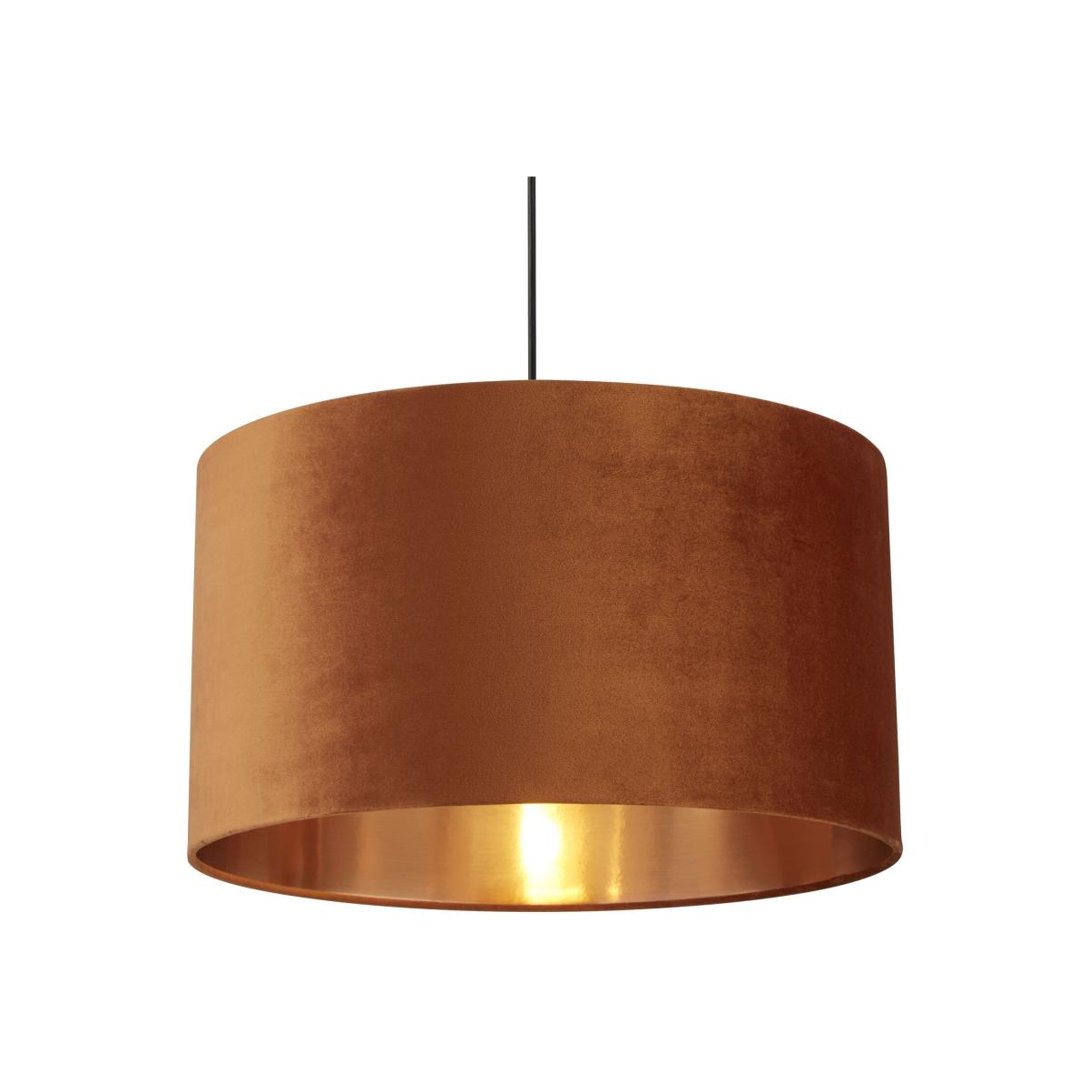 This sophisticated burnt orange velvet 50cm shade with metallic cooper inner is designed to suit a range of interior decor styles. Suitable as a celling or on a lamp base due too its reversible gimble, this shade will elevate any room.