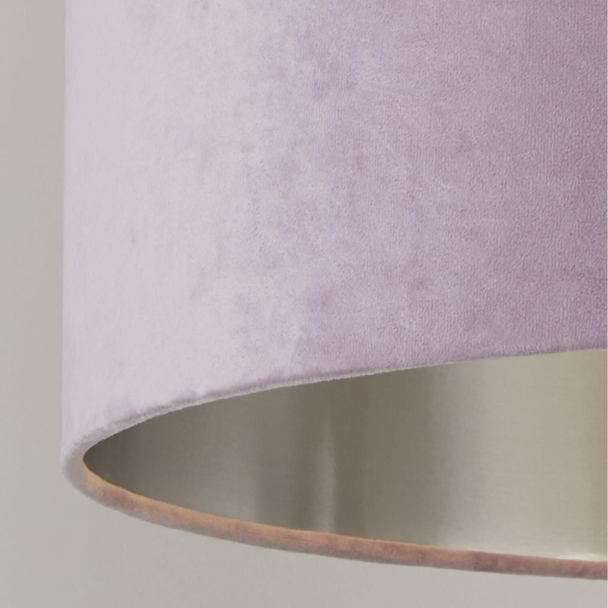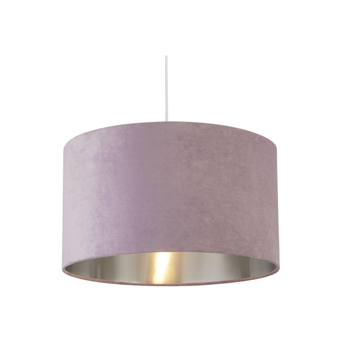 This sophisticated lilac velvet 50cm shade with metallic silver inner is designed to suit a range of interior decor styles. Suitable as a celling or on a lamp base due too its reversible gimble, this shade will elevate any room.