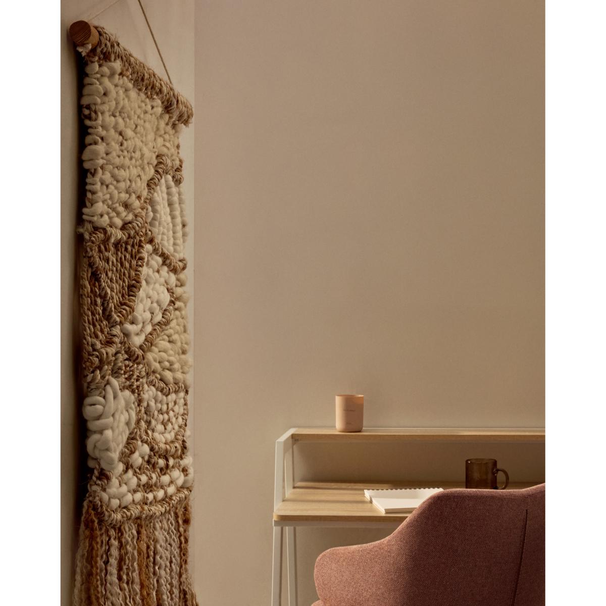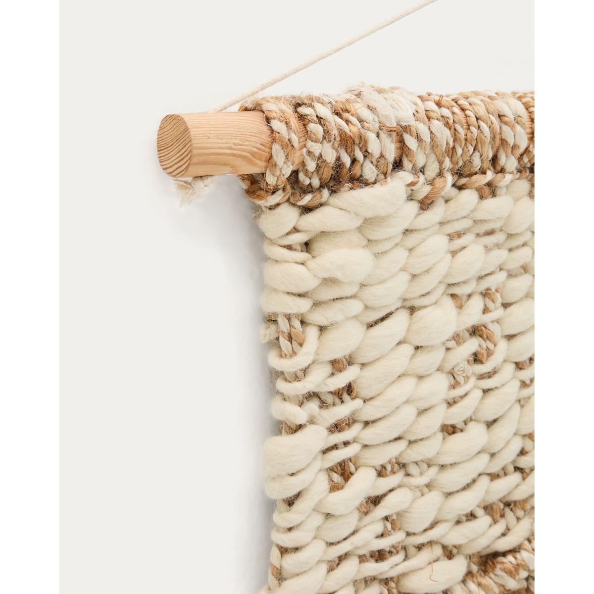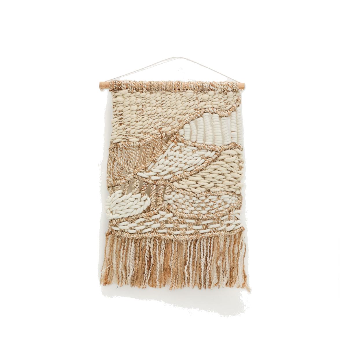 This Prak wall tapestry offers a great way to introduce texture and a touch of boho-chic into a space. I love how the mix of wool and jute creates a natural, earthy vibe that works well in both modern and rustic interiors. It’s versatile enough to hang in living rooms, bedrooms, or even a hallway to add visual interest without overwhelming the space. For styling, consider pairing it with neutral-toned furniture and understated accessories to let the tapestry be a focal point. It’s also a practical piece - hang it at eye level and complement with other textured textiles like cushions or throws for a cohesive look. Its relatively compact size makes it ideal for smaller walls or to act as part of a gallery wall, adding warmth and character effortlessly.