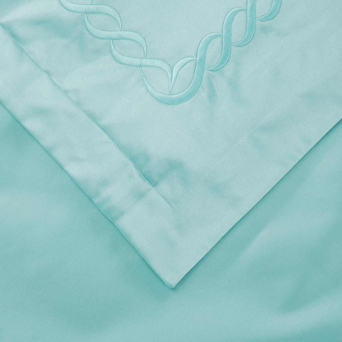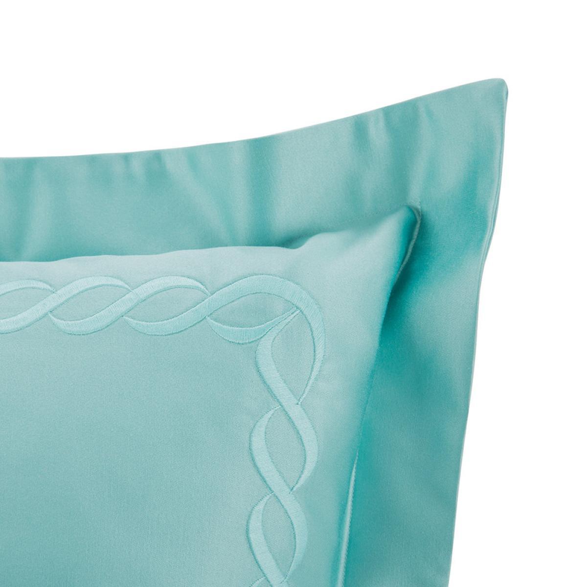 Add exquisite Italian design to your bed space with this Chain pillowcase pair from Pratesi. Made from beautifully soft finest Egyptian cotton nicknamed ‘angel skin’, this pillowcase pair is in fresh white. Finished with an embroidered chain link design in turquoise, they have charming scalloped edges.