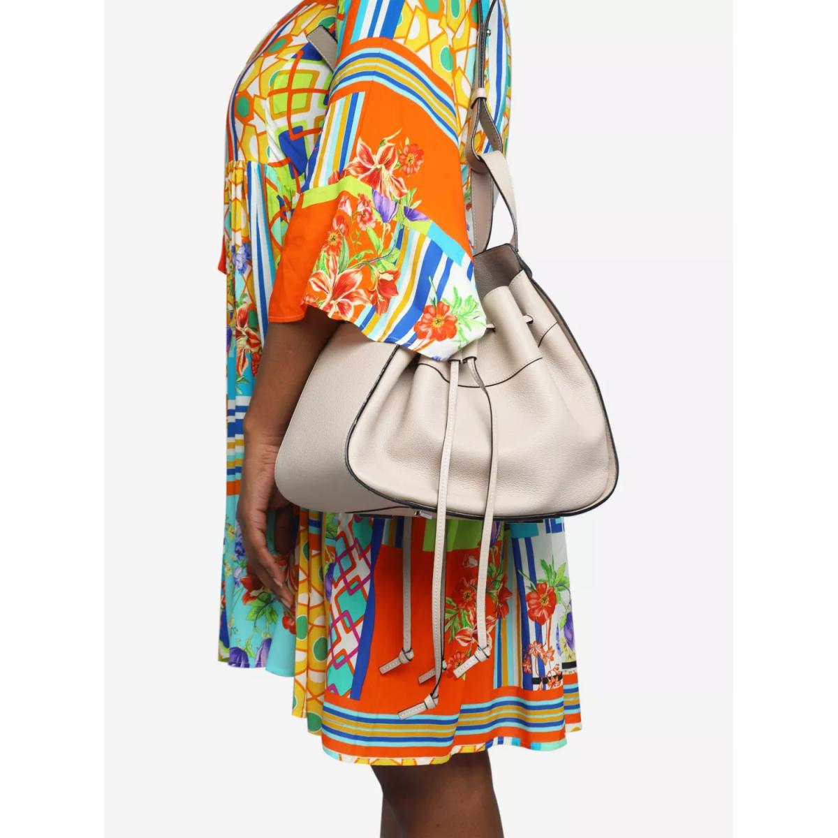Pre-loved LOEWE neutral hammock drawstring leather cross-body bag with one open compartment. Condition:This item is in good pre-owned condition, showing scratches on the leather and stains on the interior Measurements: W32 x D16 x H22cm. Strap: 46cm Material: Leather With almost 50 years of experience in luxury designer goods, Sign of the Times' expert team meticulously inspects each item they sell. In addition, Sign of the Times uses Entrupy, a cutting-edge technology, achieving a 99.1% authentication accuracy rate. Sign uses Entrupy to authenticate secondhand designer bags and small leather goods at the microscopic level.