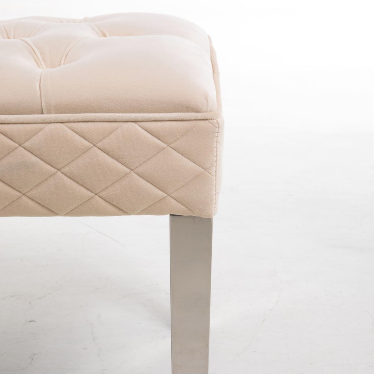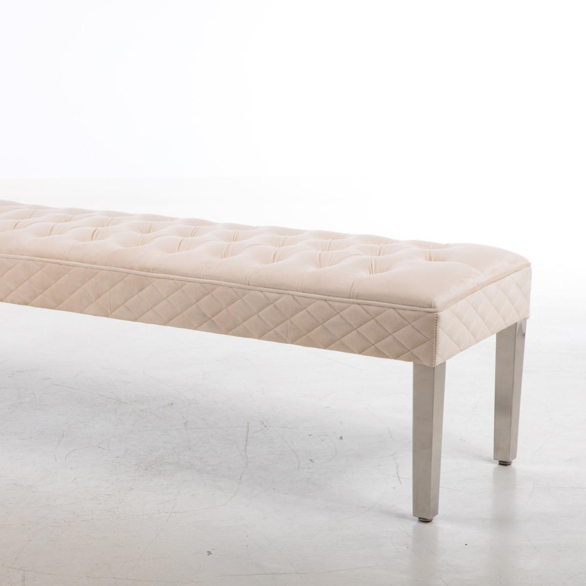 The cream velvet bench is a versatile piece that adds a touch of softness and sophistication to a range of interiors. I love its understated elegance and the plush velvet finish, which makes it a comfortable and inviting addition to living rooms or bedrooms. It works particularly well in contemporary or classic schemes, providing extra seating or a stylish footrest without overpowering the space. For styling, consider pairing it with neutral palettes for a chic, minimalist look, or mix with richer textures like velvet cushions and patterned rugs for a layered aesthetic. Its size makes it ideal for placement at the end of a bed, in front of a sofa, or as a standalone statement piece in a hallway or dressing area.