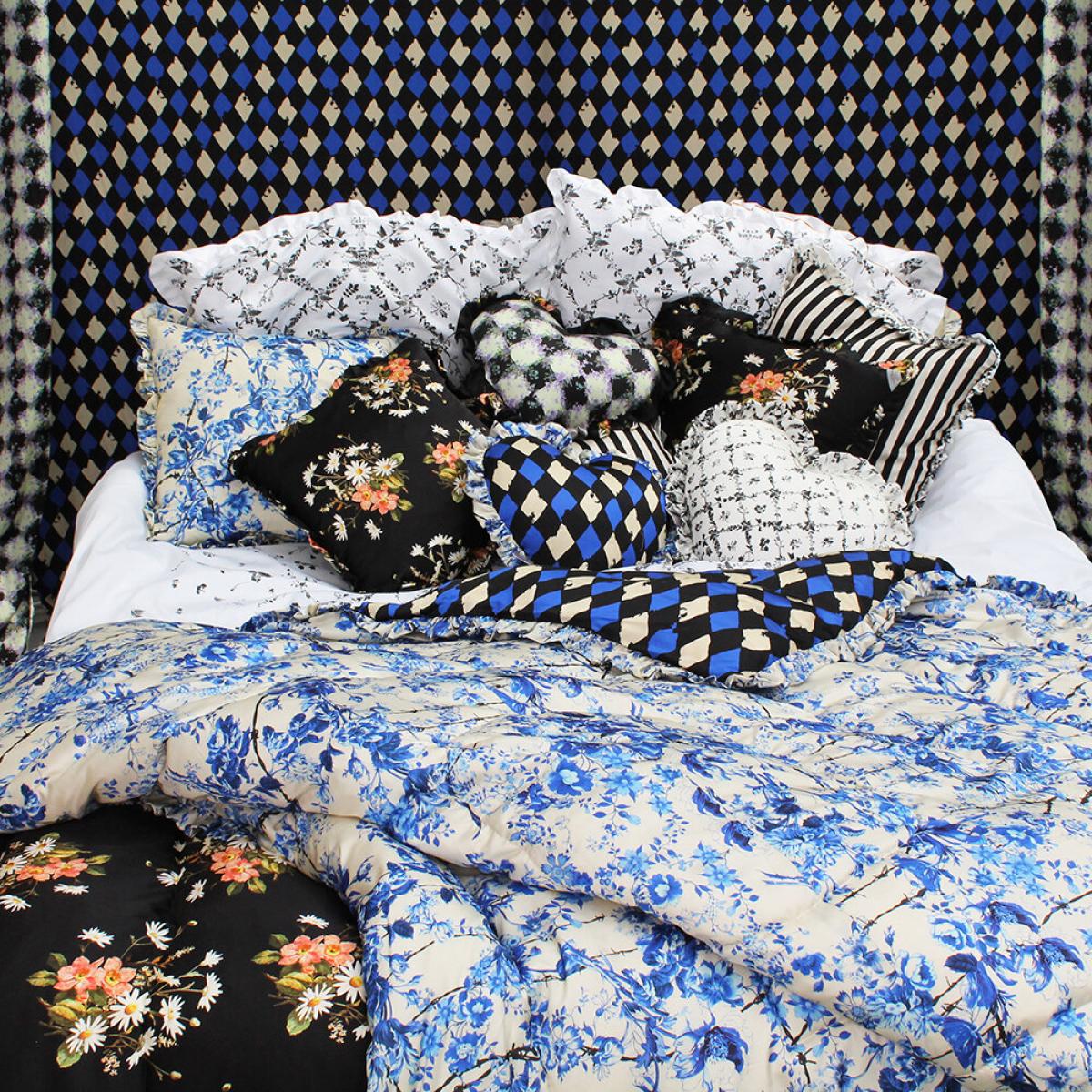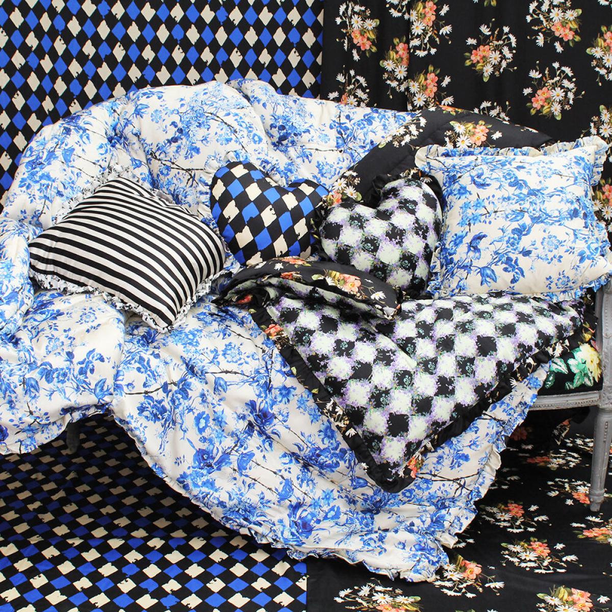 Preen by Thornton Bregazzi - Barbed Toile/Harlequin Quilted Eiderdown - Black/Blue - 225x220cm