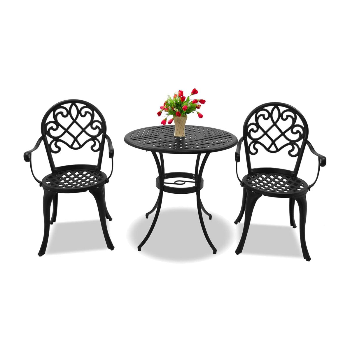 With its sumptuous design, the Prego bistro set is practical, convenient and perfect for maximising any space. It is perfect for any garden, patio, terrace, decking, balcony, lawn, yard or similar areas, and adds a touch of elegance wherever it sits. The Prego is a 3-piece bistro set featuring 2-high backed large chairs with armrests and a matching table. It promotes a decorative French influenced design, with decorative chairs and table top. Made from no-rust cast aluminium, the Prego outdoor bistro furniture is strong yet lighter and easier to move than the traditional cast iron predecessor. It is low maintenance and easy to keep clean, it has been powder coated for durability and comes complete with rubber pads for steadiness. With durability in mind, the hardwearing Prego garden bistro set is designed to be left outside all year and be resistant to most types of extreme weather. Its long life span means it will not need replacing every few years like wood, plastic and other materials, and will not rot or rust.