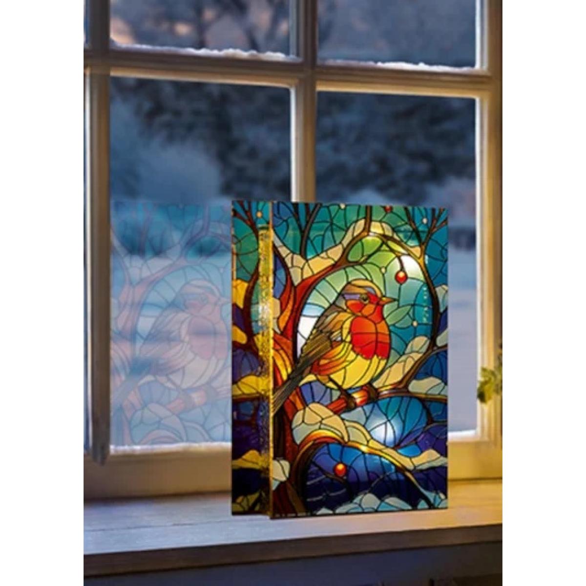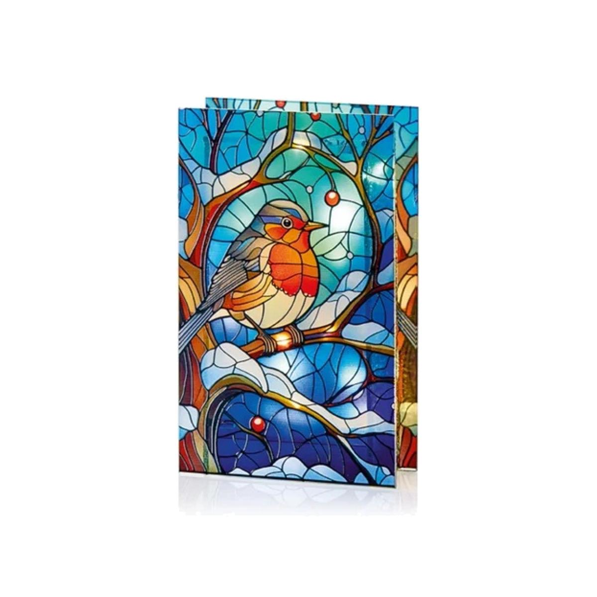 Premier Lit Robin on Branch Stained Glass - 21cm In Multicolour