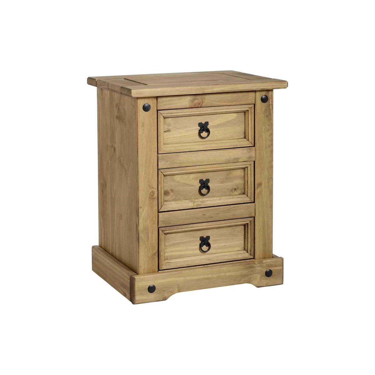 * Solid pine construction* Metal drop-ring handles Ironic as the name may be, the Corona instantly transports you to a much-needed holiday in sunny Mexico, thanks to the stylish rustic look and feel of the bedside inspired by the place. Offering plenty of storage space to keep your bedside essentials to hand, the Corona is also great as a side table in the living room or hallway in need of additional storage.