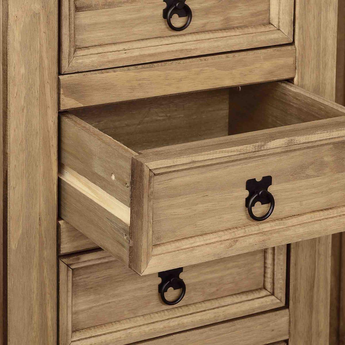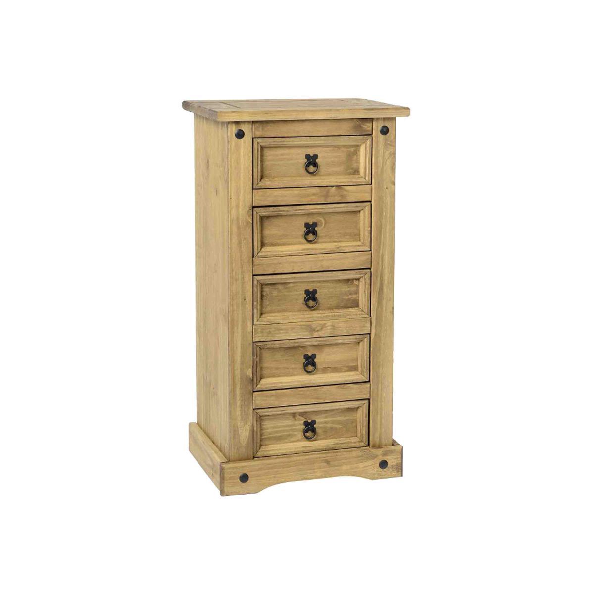 The Seconique Corona 5 Drawer Narrow Chest boasts ample storage for your bedroom. This beautiful distressed waxed pine chest will bring a whole new look to your home. The attractive design with metal drop handles and the rich colour of the wood make it a superb piece of furniture to look at that is also highly functional. With five spacious drawers, there’s plenty of room to store your belongings. Installation Note: This product should be fixed to a wall using a wall fastener. Please note, unfortunately we cannot deliver this item to the Channel Islands.