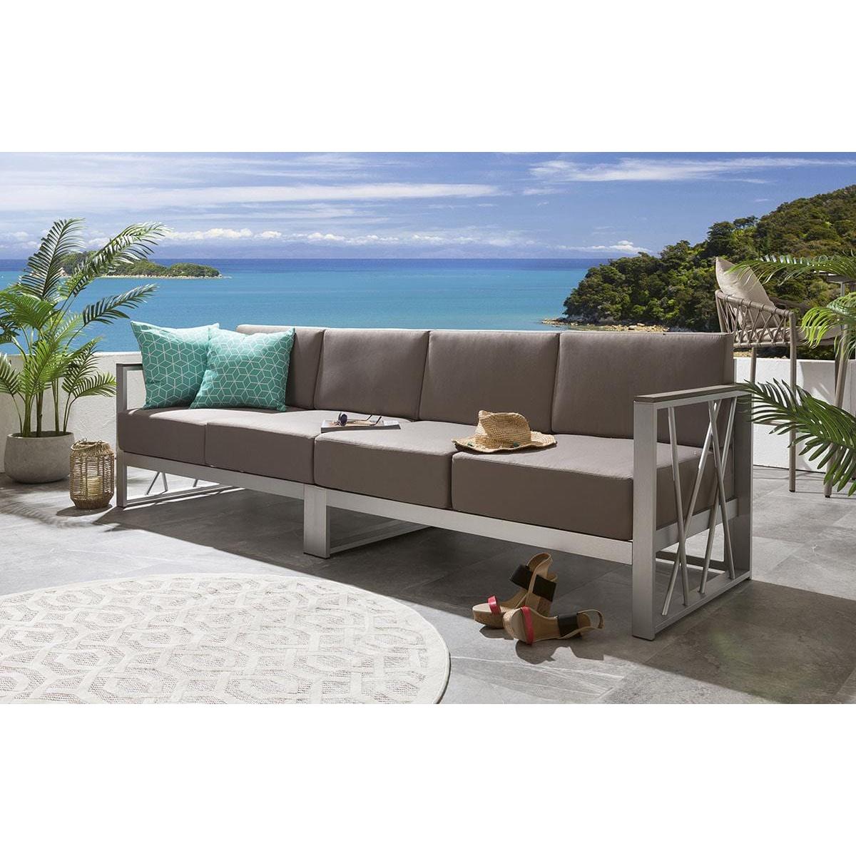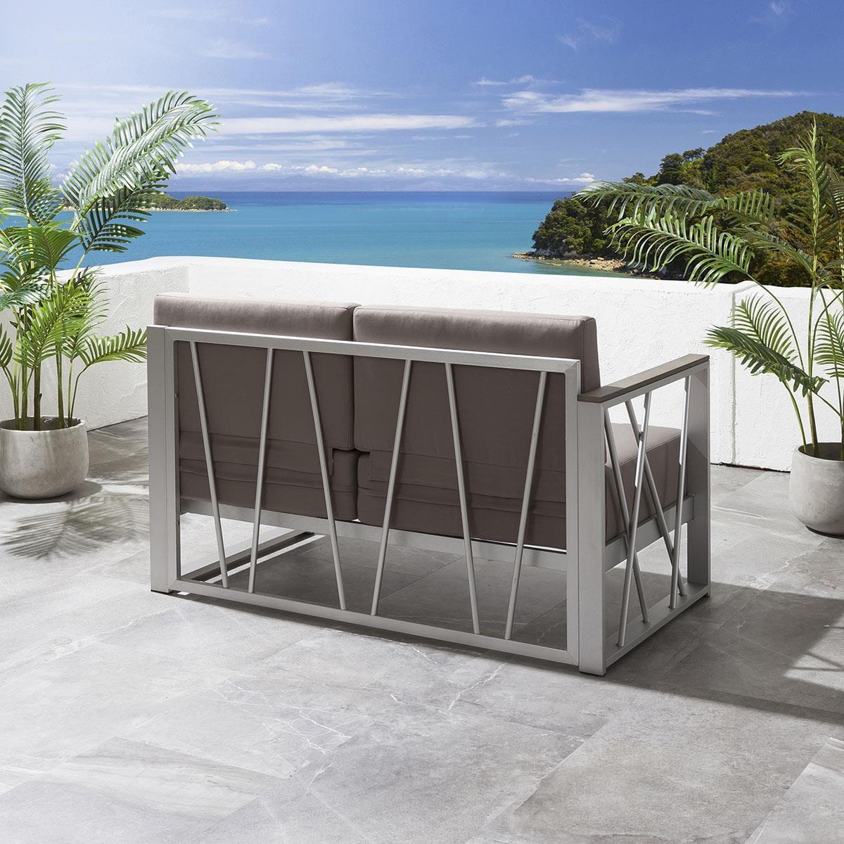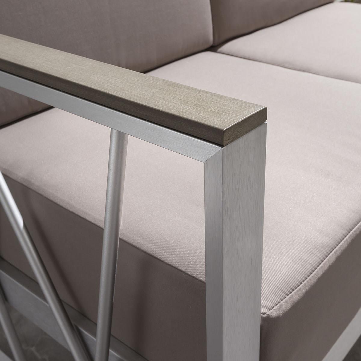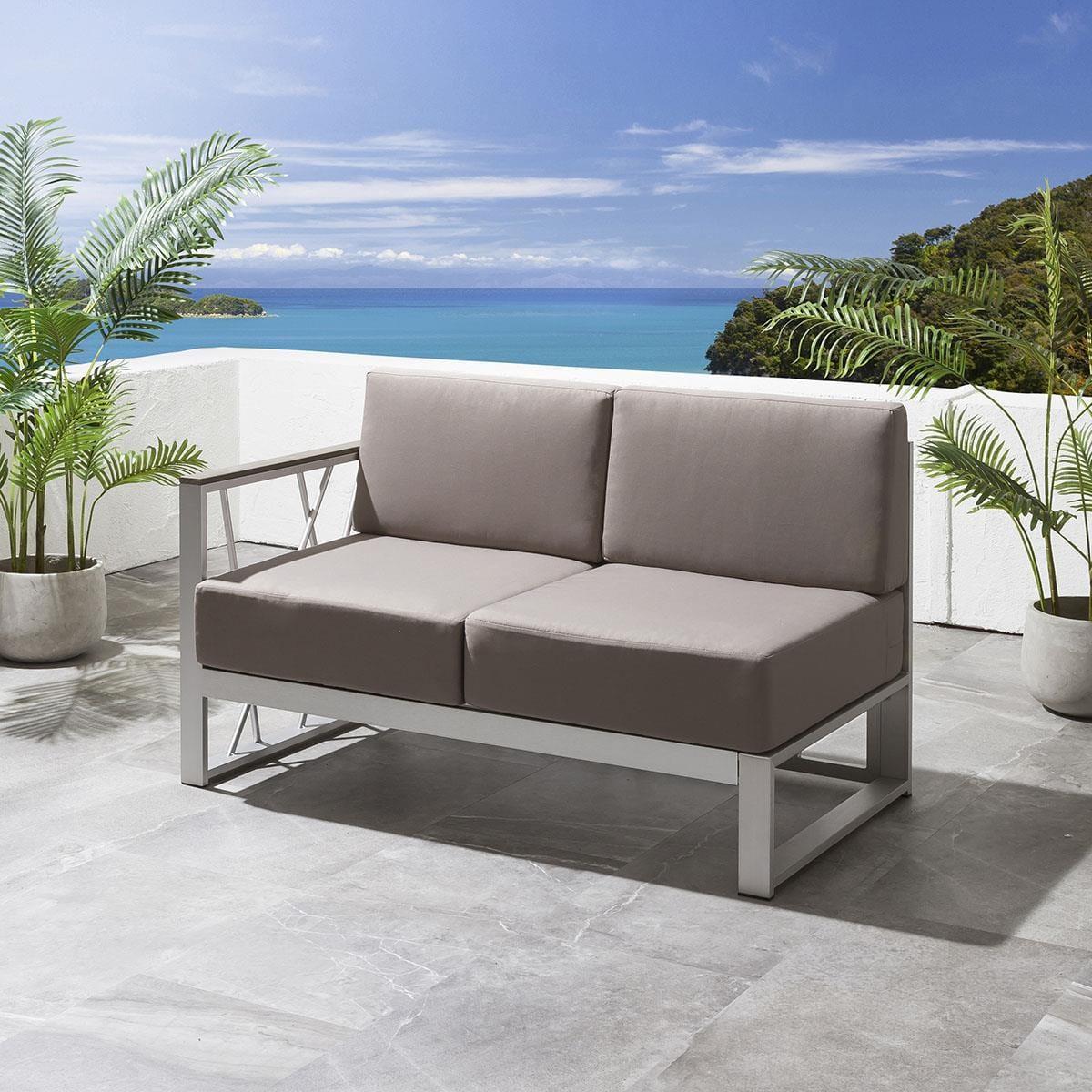 If you are seeking an ultra-modern, super-sharp Taupe garden modular sofa set that is also practical and comfortable, look no further. This stunning outdoor 4 seater garden sofa will make a gorgeous addition to your outdoor seating area or patio. All sections come with their own winter cover. The outdoor sofa set comes complete with our signature luxuriously thick cushioning that offers unbeatable comfort, topped off with rich Taupe high-end marine fabric which has amazing resilience to colour fading and damage caused by extreme weather conditions. Expertly crafted brushed aluminium modern frames are highly durable, complemented by the UV and weather-resistant polywood arms which will continue to look great after many years and are super-easy to clean, guaranteeing years of enjoyment with the modular garden sofa. If you need more information about this product, use the Live Chat service to speak to the team or send us a message. Spread the cost our with interest-free finance options. Minimum spend applies. W263cm D70cm H78cm 4 Seater Garden Sofa Free beige protective cover included