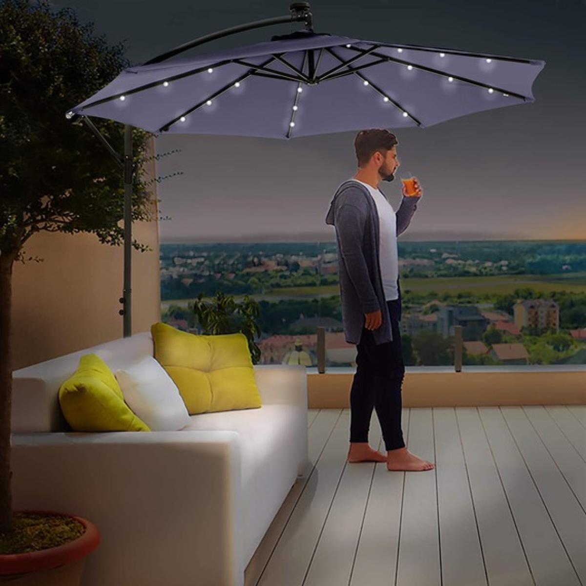Premium Garden Parasol Umbrella with 24 Integrated Solar Powered LED - Urban Grey