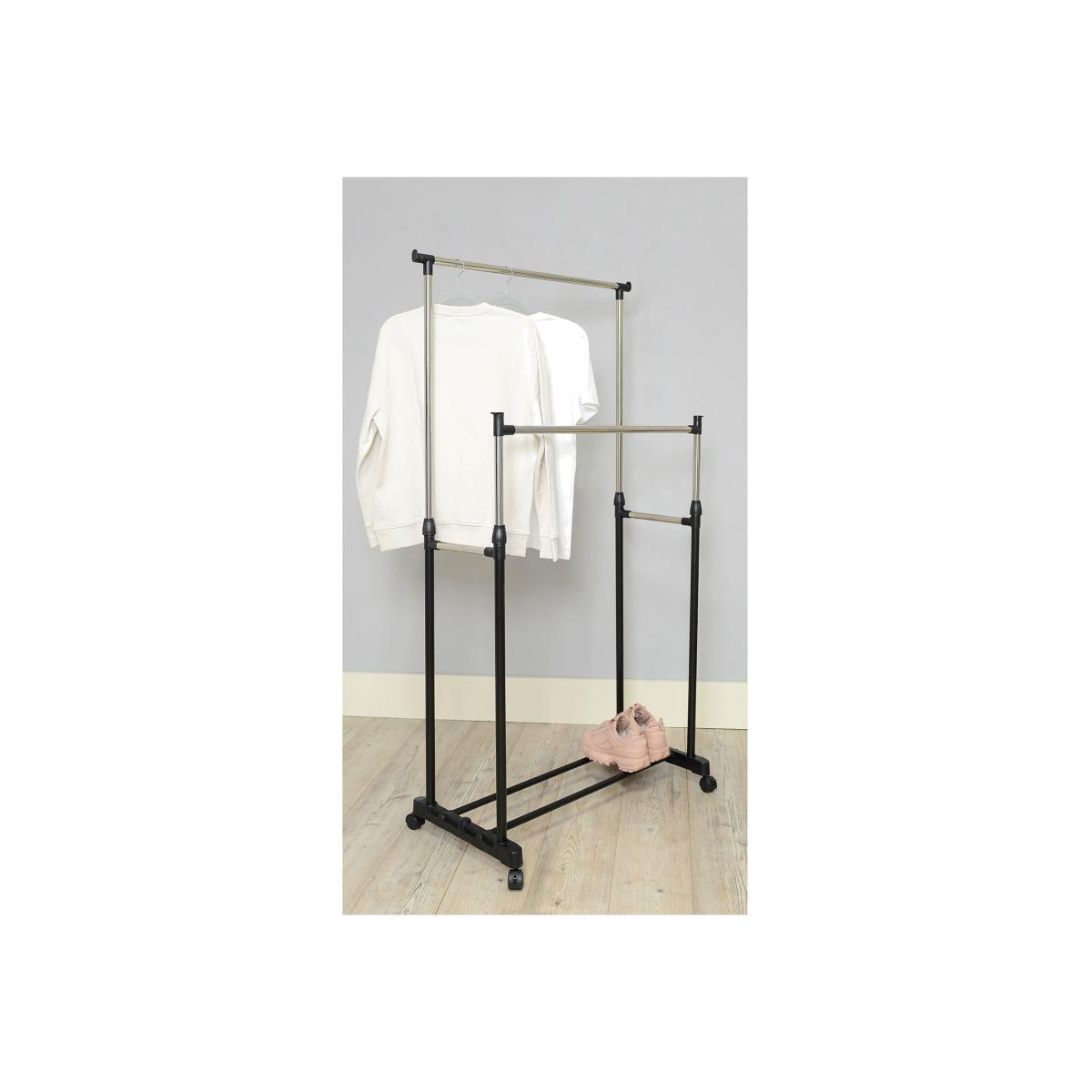 Create additional storage for your clothes with this Premium Garment Rail. With two rails to choose from, this doubles your wardrobe space and displays your clothes in a trendy, easy-to-access way. This has twin rails which can be set at different heights to best suit your space and even has wheels to move it wherever you need it most. It holds up to 15 kilograms of clothing and is a great addition to your dressing room.